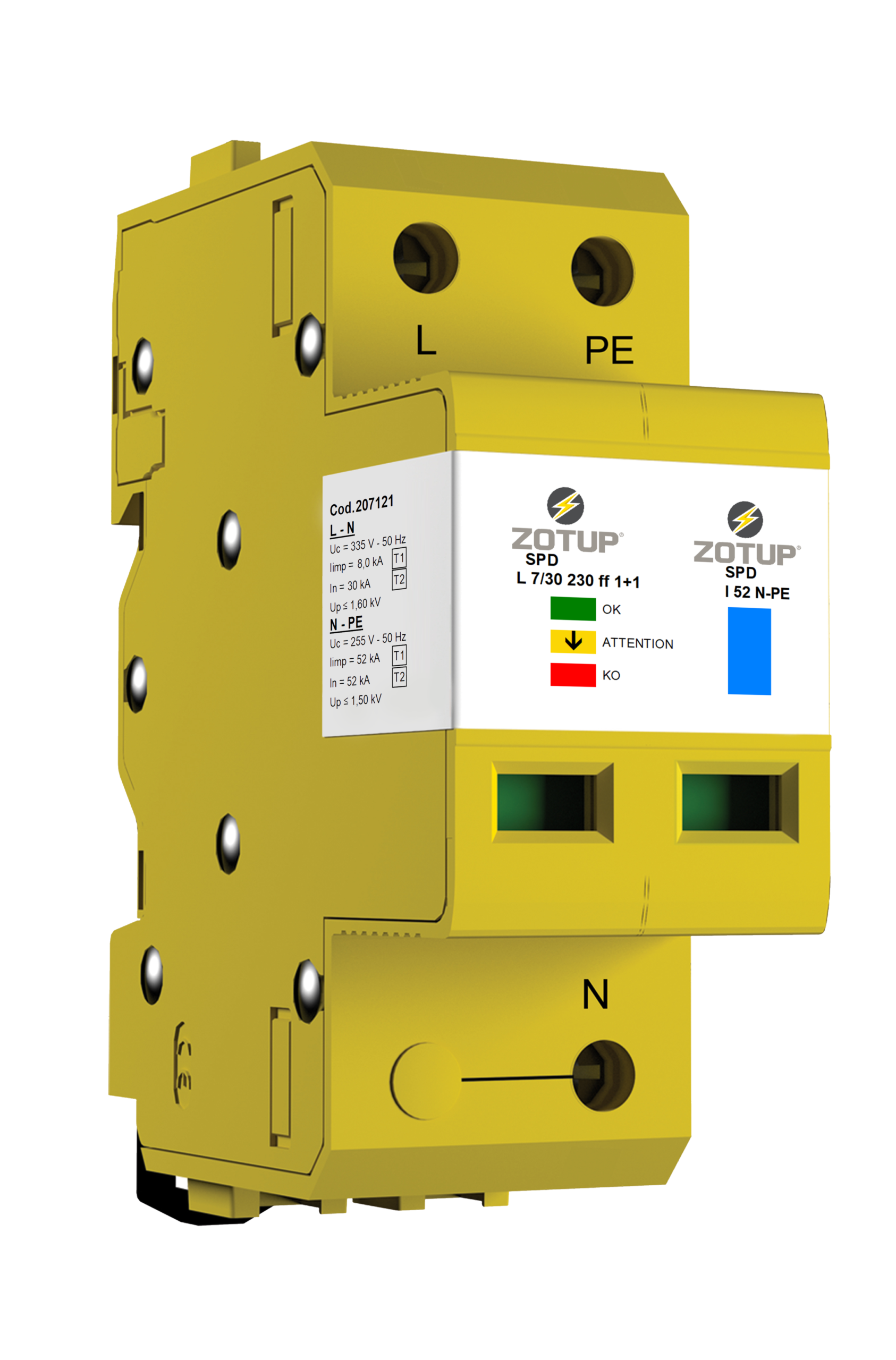 ZOTUPLIMITER L 7/30 230 1+1 cod. 207 121. SPD bipolare impiegato in circuiti monofase a 230 V.