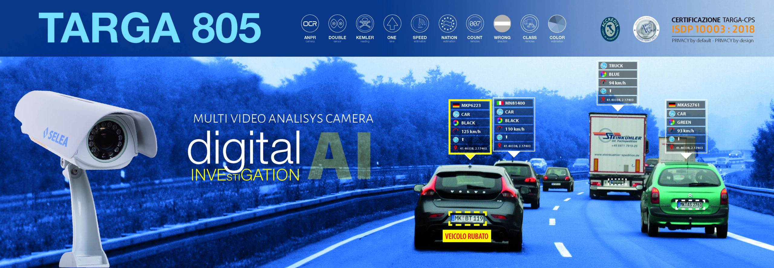 SELEA (Cicognara, MN) ha sviluppato una telecamera di videosorveglianza dalle prestazioni superiori, in grado non solo di fungere da normale telecamera di sorveglianza ma anche in grado di estrapolare dalle immagini una elevata quantità d’informazioni (lettura targa, nazionalità, classe, colore, velocità, direzione, riconoscimento tabella merci pericolose).