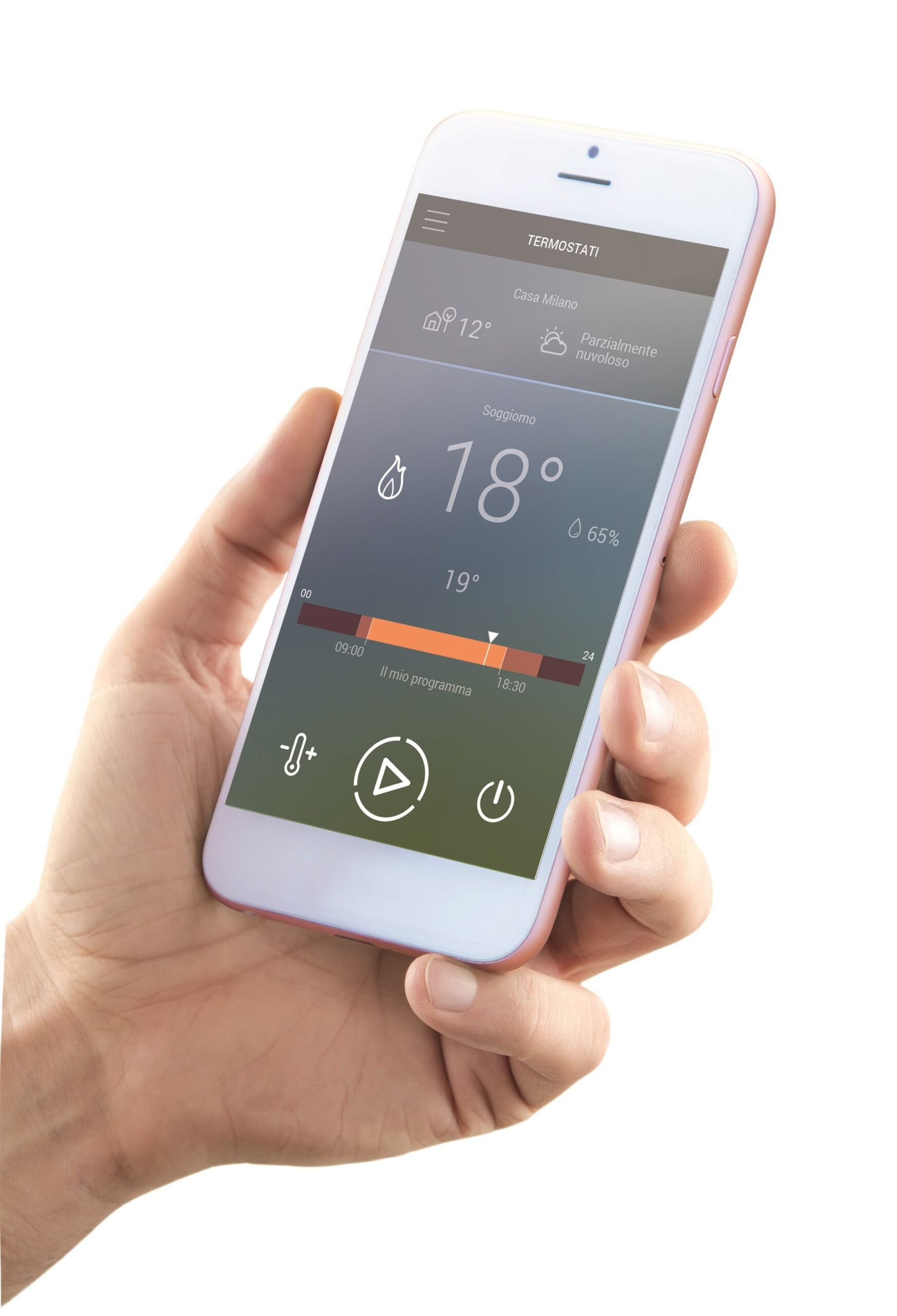 Bianco, effetto vetro, un display discreto ma chiaramente visibile, Smarther s’integra in tutti gli stili abitativi e con tutte le linee civili. L’illuminazione bianca, decorativa e informativa, accompagna nella comprensione e nell’uso delle funzioni. Boost, è la funzione esclusiva di Smather per avere rapidamente il comfort desiderato, riscaldamento o raffrescamento, per un tempo limitato (30’, 60’ o 90’) a prescindere dal profilo impostato e dalla temperatura dell’ambiente.