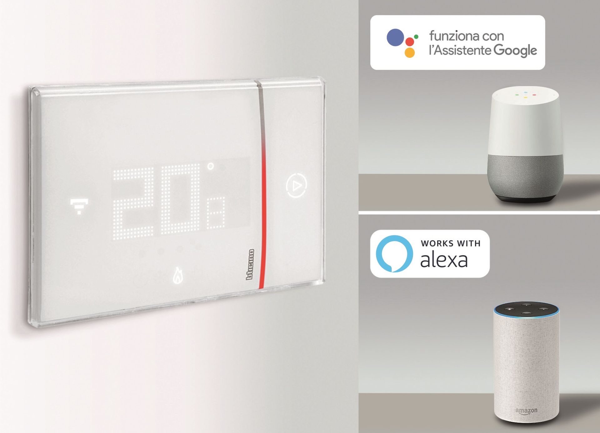 Smarteher di BTicino è il termostato con Wi-Fi integrato, semplice da usare e sempre connesso e ora anche gestibile dagli assistenti vocali Google Home e Amazon Alexa.