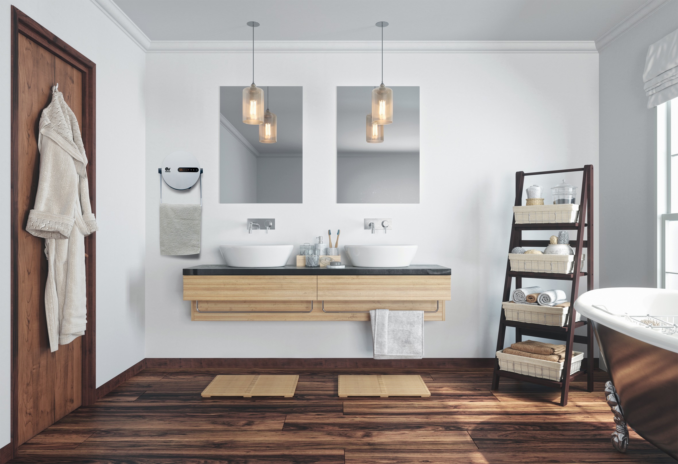 Installato sulle pareti, il prodotto presentato da Vortice si inserisce armoniosamente nell’ambiente creando un rapido comfort e assicurando, con la staffa in dotazione, salviette sempre calde. Tolta la staffa e posizionato orizzontalmente su un ripiano o sul pavimento, svolge le funzioni di un tradizionale termoventilatore, diventando anche un oggetto d’arredo.