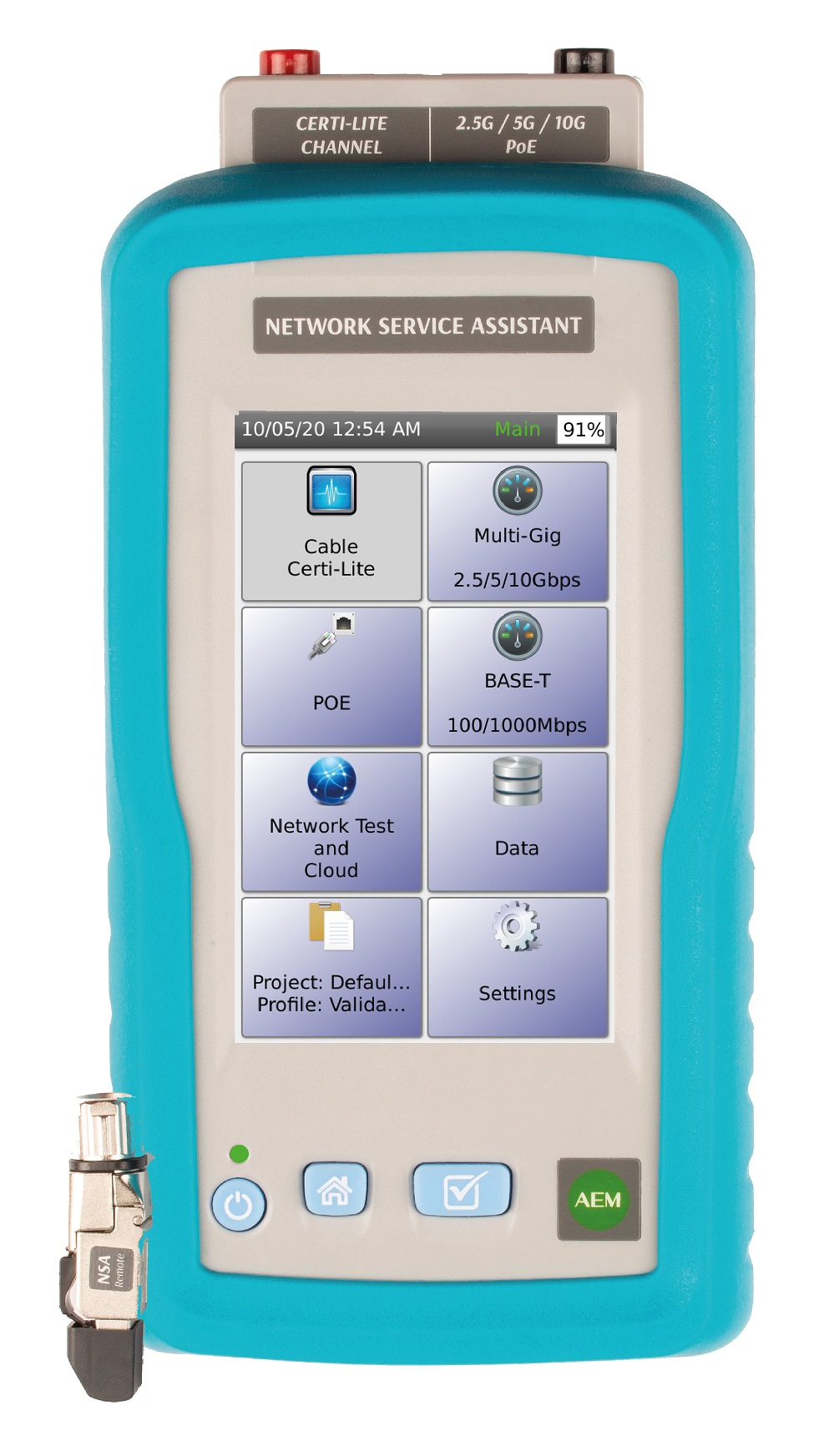 Composto da un’unità principale touchscrqubix: een e da un terminatore remoto, l’NSA esegue misurazioni single-ended dei principali parametri di una link in rame quali lunghezza, RL, NEXT, attenuazione, ACR-F e integrità della schermatura, verifica la potenza PoE erogata dallo switch, testa la velocità di connessione fino a 10G ed esegue il troubleshooting e mappatura della rete grazie a specifiche funzioni di Network Test.