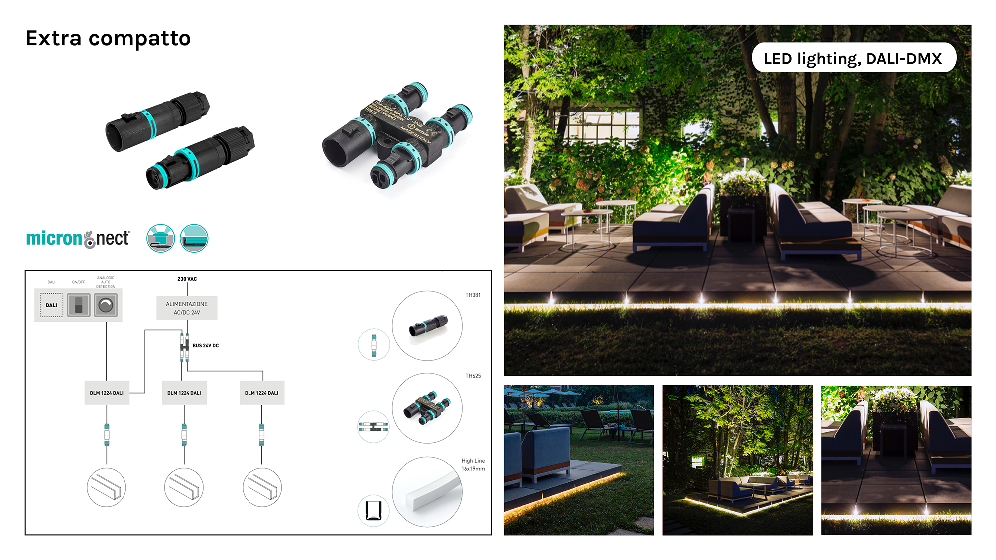 Per facilitare la realizzazione di derivazioni in parallelo, Techno ha messo a punto i nuovi distributori di corrente TH625 che, in virtù delle dimensioni compatte e delle caratteristiche costruttive, sono adatti a qualsiasi tipologia d’impianto, di segnale e di potenza. Questi distributori si abbinano ai micro-connettori presa e spina TH381 che, grazie al diametro esterno di soli 14 mm, possono essere installati in spazi estremamente ridotti.