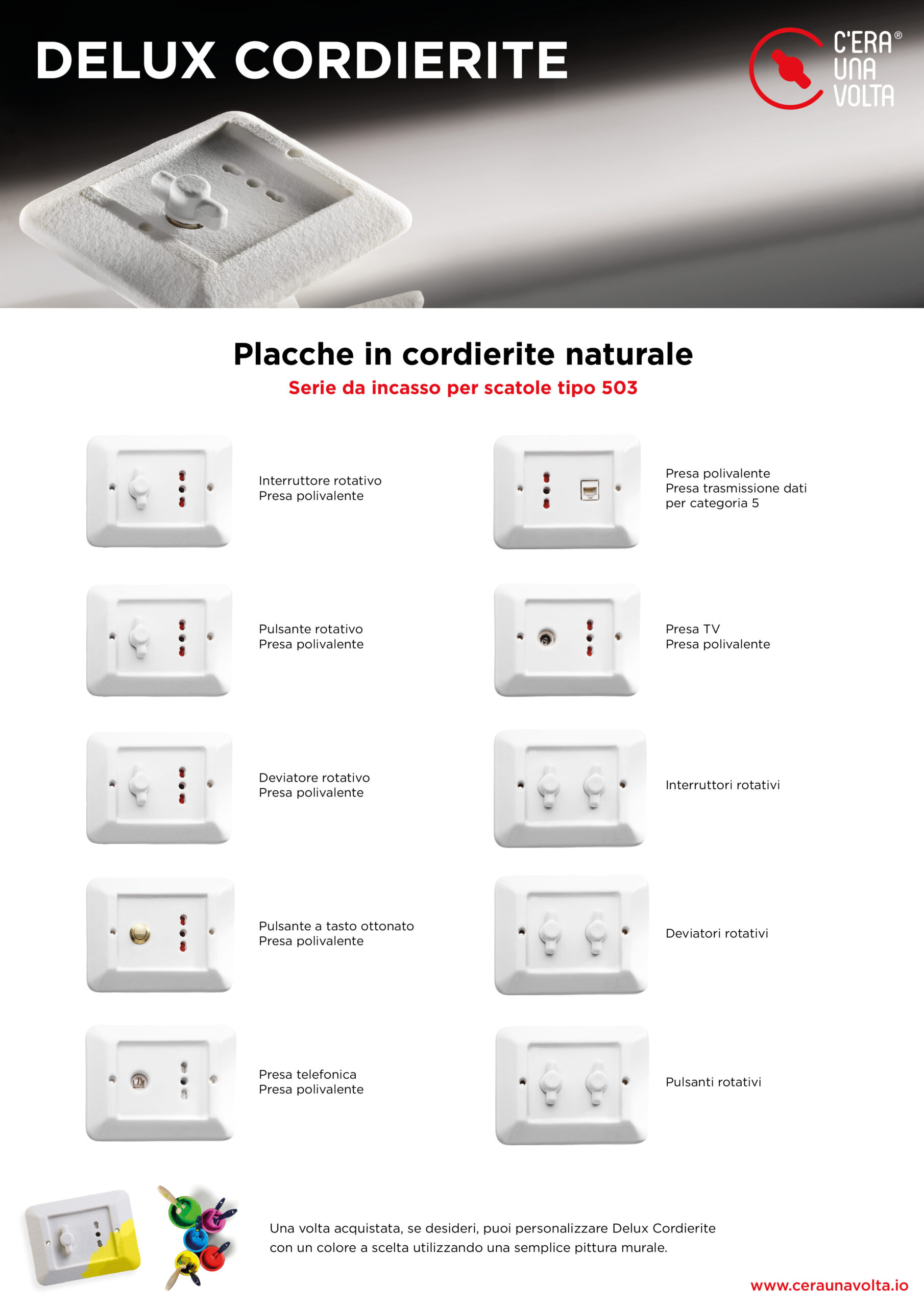 Ti invitiamo a consultare e scaricare gratuitamente a questo link (www.ceraunavolta.io) il Catalogo C’era una volta 2021, da pagina 186 a pagina 189 potrai trovare la sezione dedicata a Delux Cordierite.