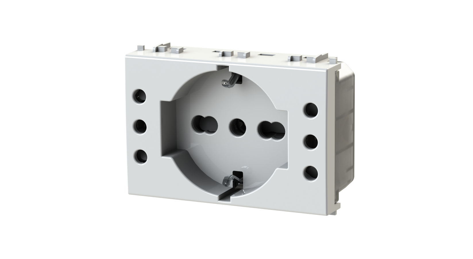 Nella versione dotata solamente di prese elettriche, la profondità del frutto è inferiore alle tradizio­nali prese elettriche consenten­do una facile installazione anche nelle scatole in cui il passaggio dei cavi elettrici renderebbe dif­ficile l’inserimento di più prese.