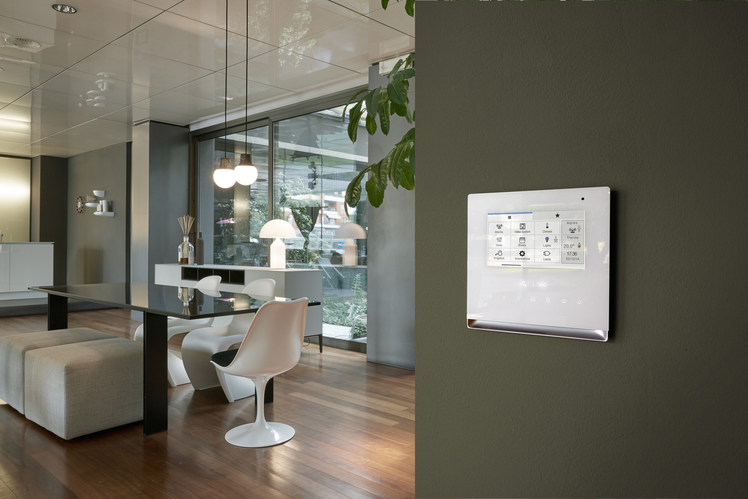Comanda infatti luci, tapparelle, aperture automatizzate, termoregolazione a zone con schedulazioni personalizzate, gestione irrigazione, visualizzazione dei consumi – energia elettrica, acqua, gas – gestione distacco carichi elettrici e visualizzazione di telecamere su rete IP.
