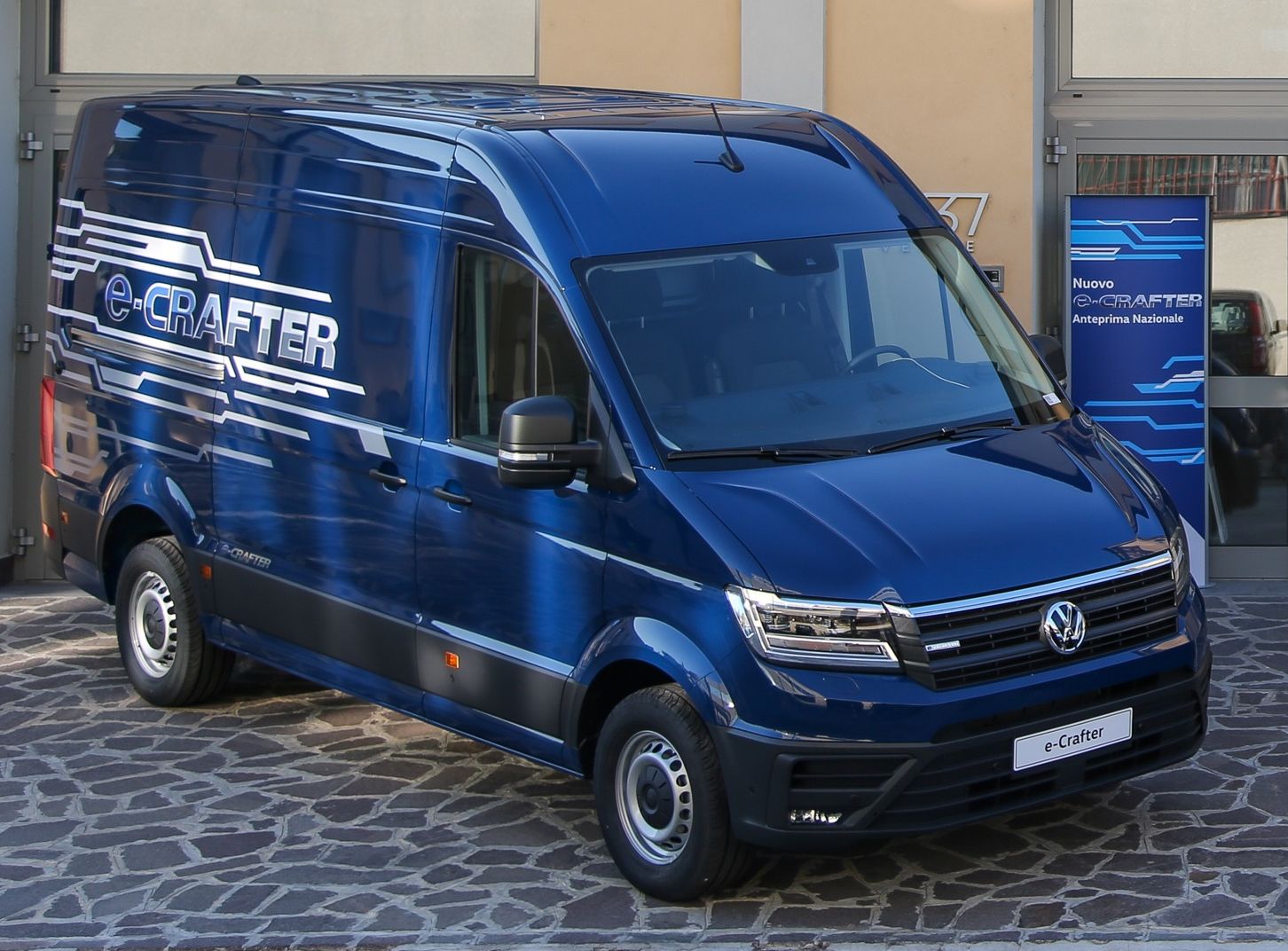 Sistema di frenata anti collisioneAnche Volkswagen ha sviluppato il suo primo furgone a emissioni zero, l’e-Crafter, costruito sulla base della seconda generazione del commerciale multifunzione tedesco. Il primo obiettivo del costruttore è stato di sfruttare nel miglior modo possibile l’architettura del veicolo per l’integrazione dei componenti della trazione elettrica. La batteria agli ioni di litio, per esempio, viene alloggiata nel sottoscocca dell’e-Crafter, mentre nella parte anteriore del mezzo è integrato il motore elettrico, che sviluppa una potenza massima di 136 cv (100 kW) con una coppia massima di 290 Nm. Anche la capacità di trasporto rimane molto elevata, come dimostrano le 1,72 tonnellate di portata utile. Dal punto di vista dell’autonomia si raggiungono i 173 km, con una velocità massima di 90 km/h. L’e-Crafter al motore elettrico aggiunge i più moderni sistemi di assistenza alla guida e infotainment. La dotazione di serie comprende: ParkPilot con sistema di protezione delle fiancate, telecamera multifunzione anteriore e una telecamera per la retromarcia. Sempre di serie, il sistema di compensazione delle raffiche di vento laterali, i fari con tecnologia LED, il climatizzatore automatico Climatronic, il riscaldamento dei sedili, i sedili comfort e il sistema di navigazione “Discover Media”, comprensivo di “App Connect”, sistema di comando vocale e interfaccia per telefono cellulare. Si tratta inoltre del primo veicolo commerciale della categoria dotato di sistema di frenata anti collisione multipla di serie.