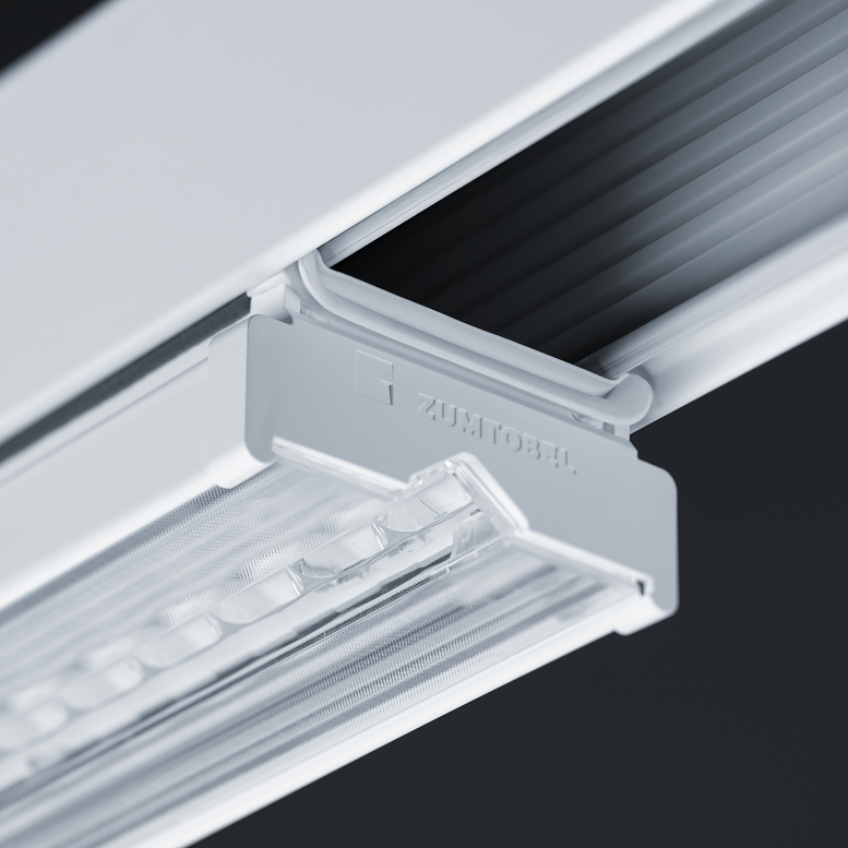 Il sistema di file continue TECTON si adatta rapidamente alle nuove esigenze. Ciò è garantito dal binario portante con la sua sezione conduttrice di corrente a 11 poli integrata e un connettore di testa premontato. In questo modo la corrente viene prelevata in modo continuo su tutta la lunghezza del binario. Inoltre, le guarnizioni sui giunti non pregiudicano la funzionalità del binario. Anche tra due binari, i componenti illuminotecnici possono essere posizionati, aggiunti o spostati in modo flessibile.