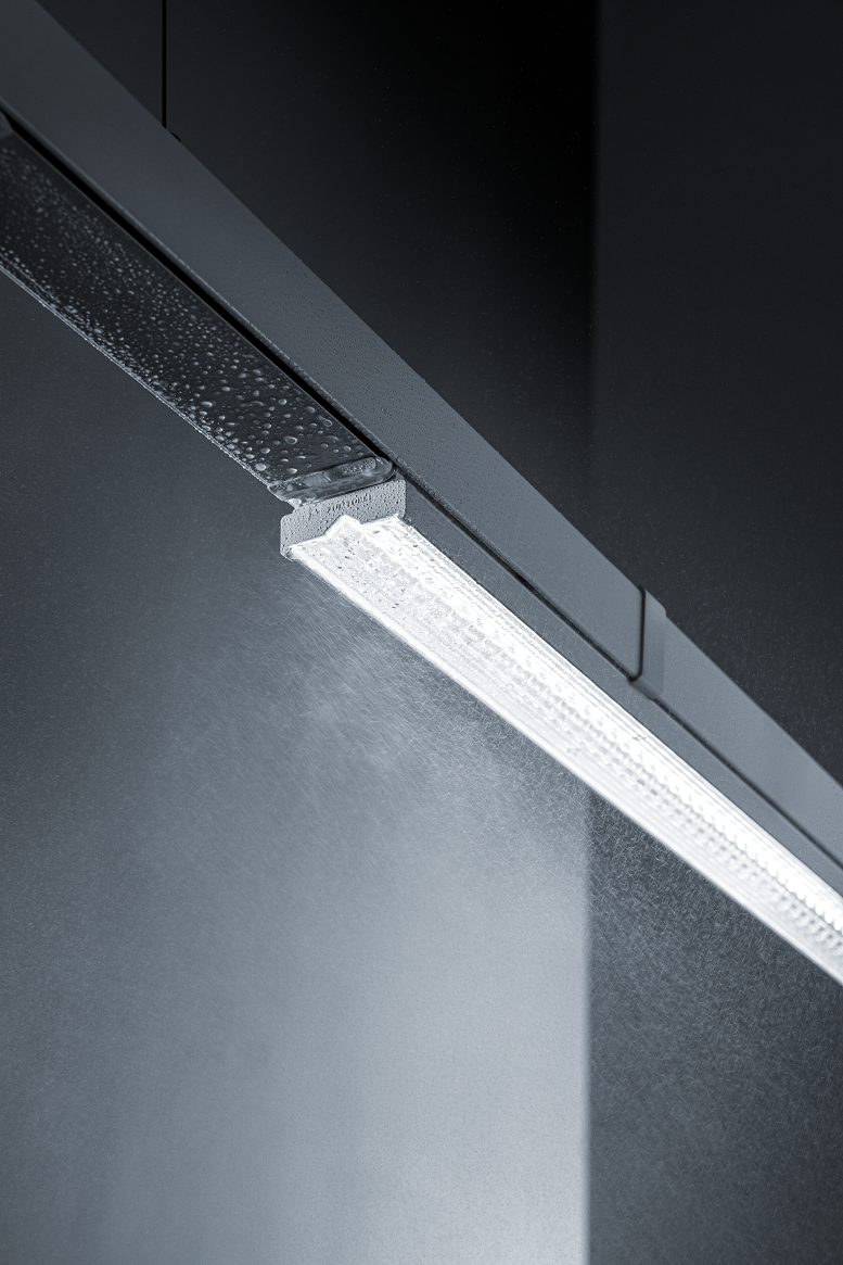 Nella zona di giunzione tra due binari di supporto, un manicotto impermeabile previene la penetrazione di polvere e acqua all’interno del binario. All’interno dei profili degli apparecchi sono state predisposte guarnizioni di schiuma, mentre delle strisce traslucide impermeabili sono state installate tra gli elementi delle lenti, proteggendo i LED dalle impurità. Tra i moduli delle file continue e il binario, le protezioni del profilo assicurano un punto di collegamento protetto da polvere e acqua.