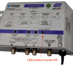Il sistema VIP analizza in maniera costante tutta la banda di lavoro segnalando, tramite l’apposito Led, il superamento del massimo livello di uscita del segnale TV. Se il sistema rileva un superamento del livello massimo (dovuto per esempio, a un eccesso di amplificazione di alcuni canali in banda UHF) il LED si accende e segnala l’anomalia. Il LED di controllo rimane spento quando il livello dei canali amplificati rimane all’interno del range di buon funzionamento.