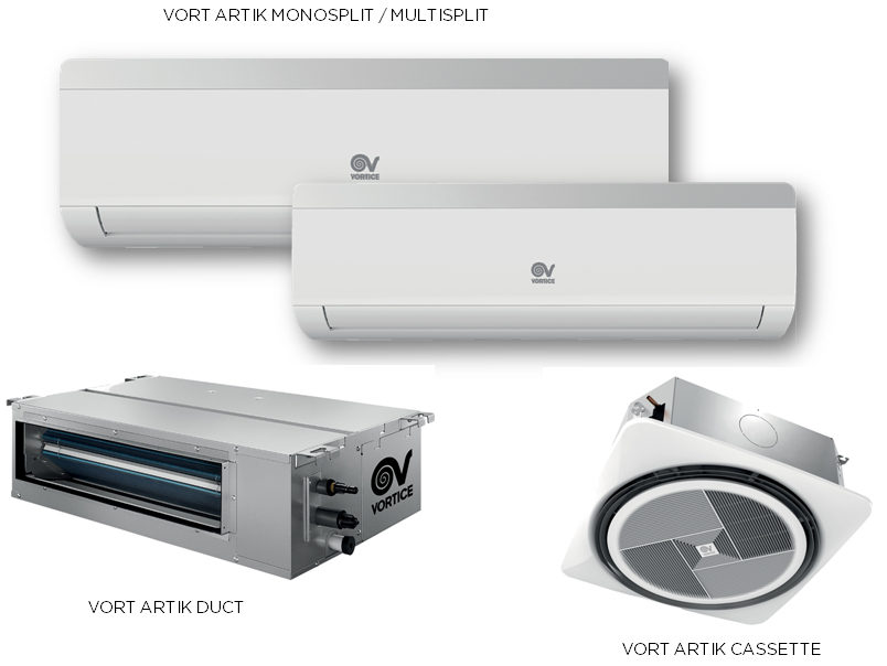 Vortice di Tribiano (MI) rinnova il catalogo dei climatizzatori con i nuovi Vort Artik progettati per l’installazione a parete (monosplit e multisplit), a controsoffitto (cassette) e da condotto (duct). Sono tutti in classe energetica A+/A++ e compatibili con l’accesso ai benefici fiscali del “Conto Termico 2016”.