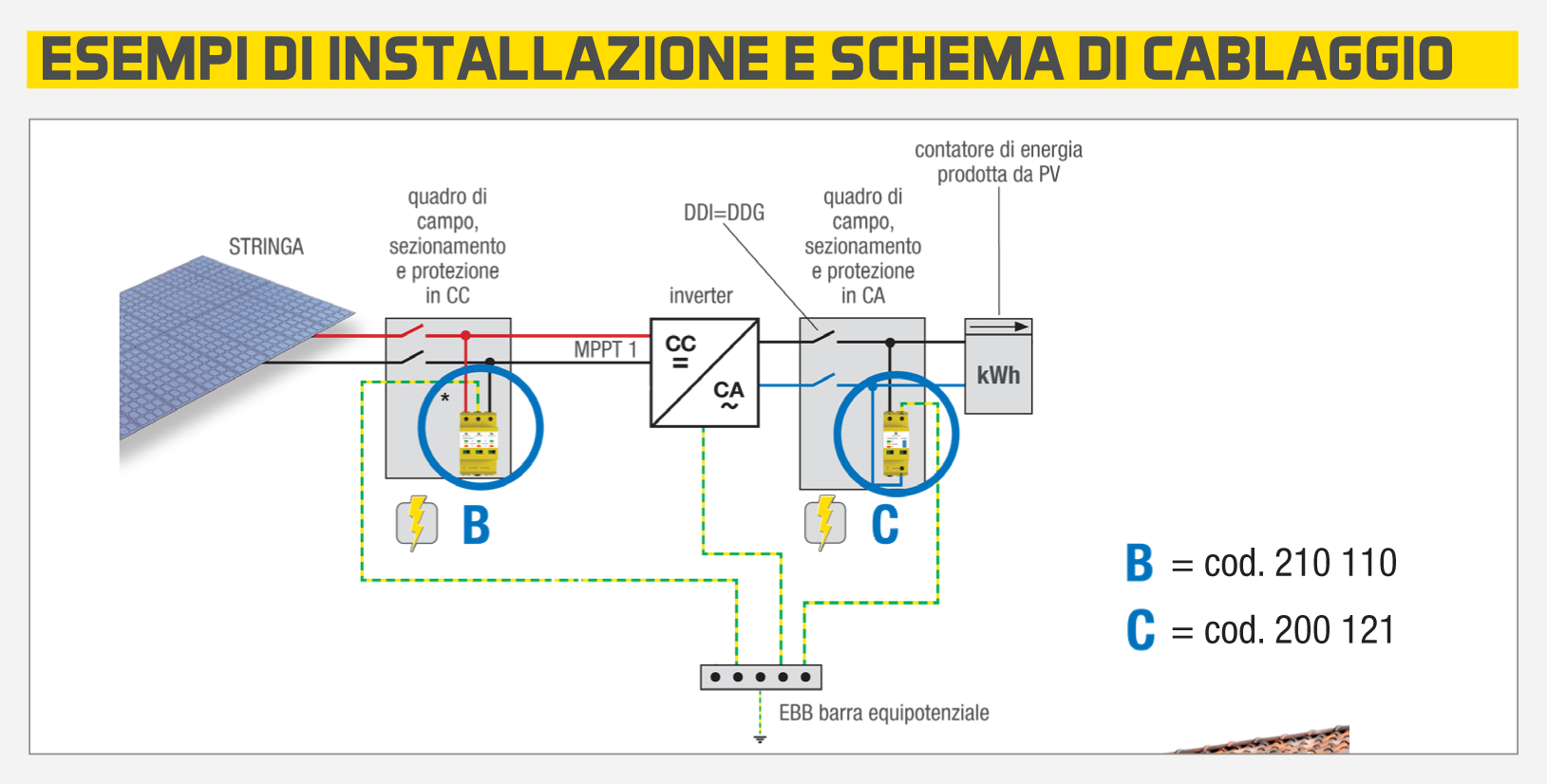 Tipicamente installato vicino all’inverter, vicino al generatore del fotovoltaico e/o nelle cassette di stringa, è un limitatore di tensione dotato di varistore con tempi di intervento rapidissimi, inferiori ai 25 ns.