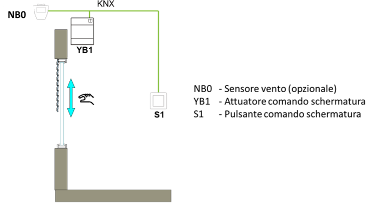 Tralasciando la soluzione in classe D, che è relativa a una gestione puramente manuale del sistema, la soluzione di figura 1 prevede un azionamento motorizzato della schermatura utilizzando un comando manuale: