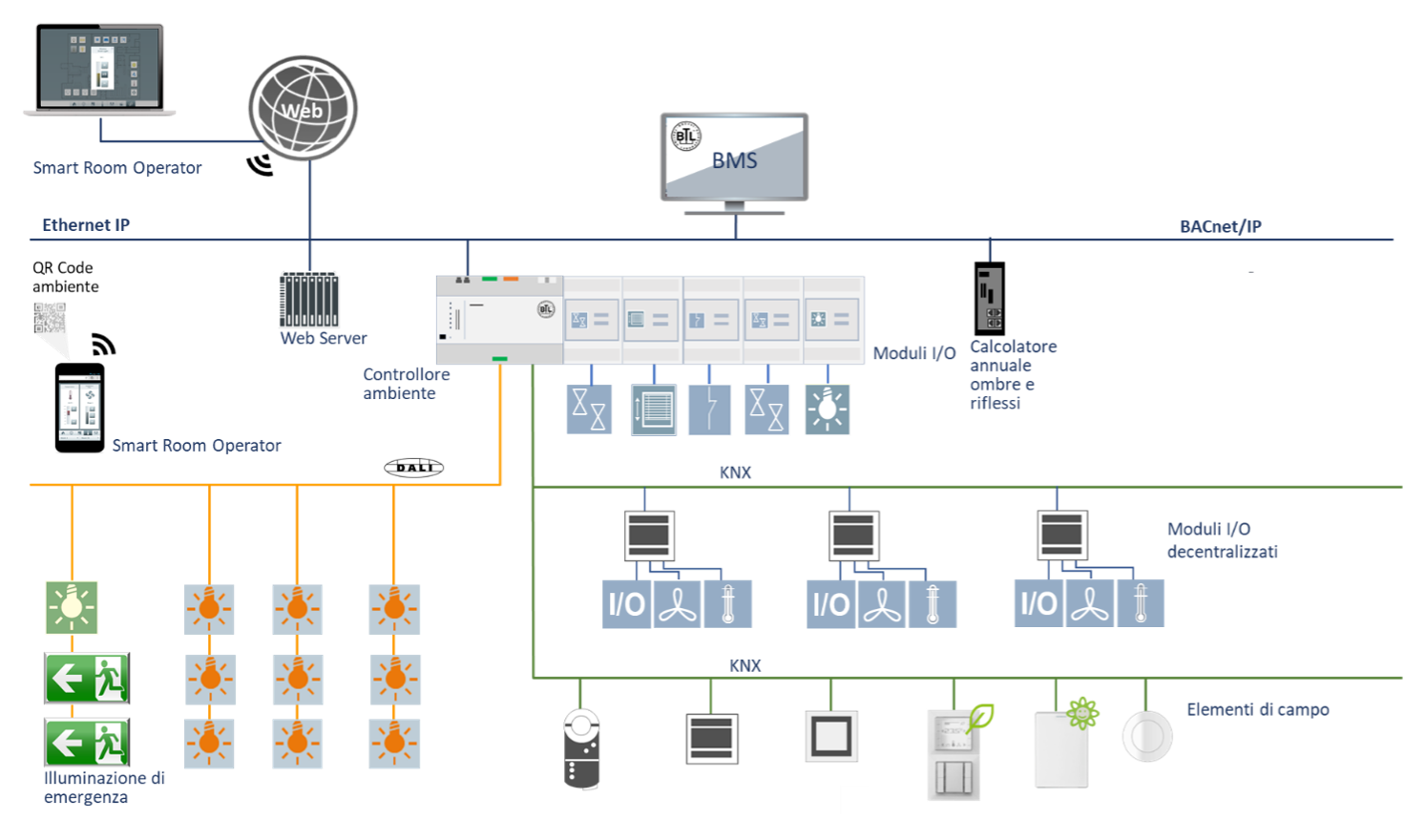 Le caratteristiche prestazionali richieste dalla normativa EN 15232-1 evidenziano, per il sistema BACS dell’edificio, e in particolare per quello relativo ai singoli ambienti, la necessità di rendere interoperabili le differenti funzioni e applicazioni di controllo oggi disponibili, al fine di garantire il più elevato comfort e risparmio energetico.