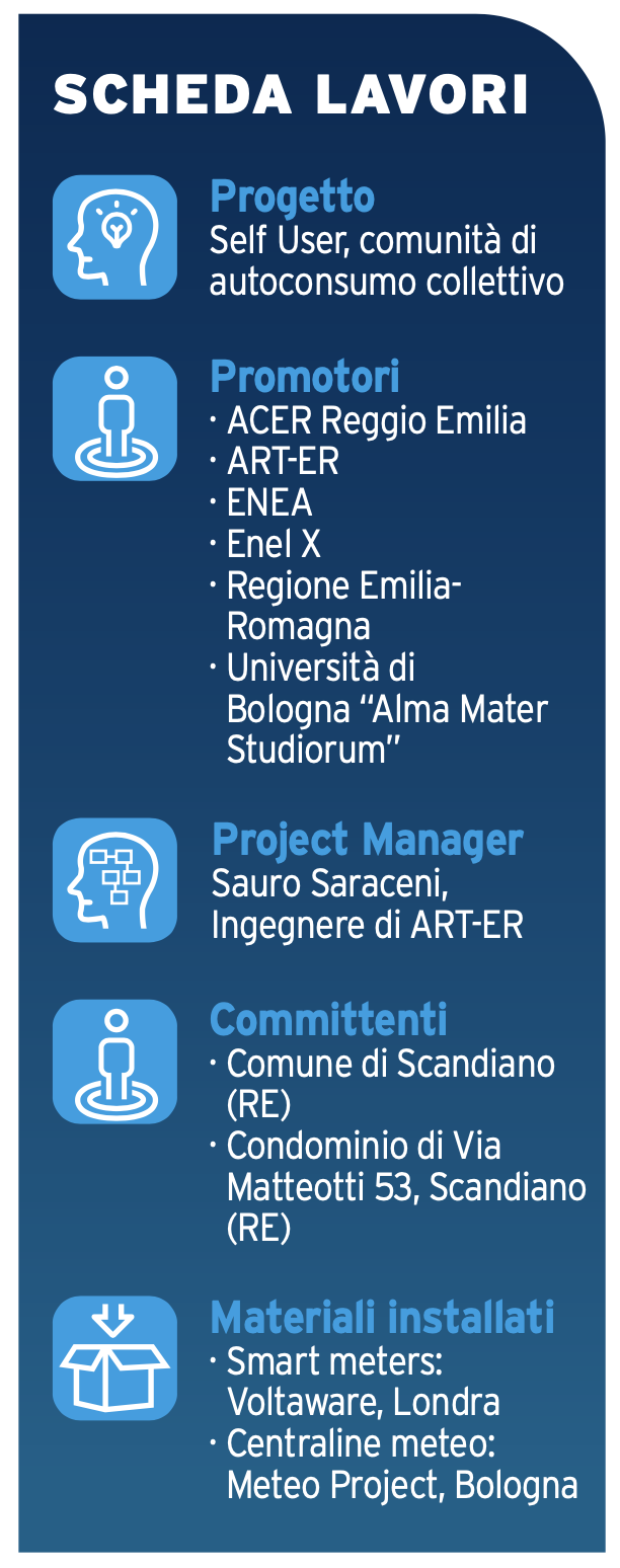 Coordinato da ART-ER (Attrattività Ricerca Territorio Emilia-Romagna, società che promuove progetti per la crescita sostenibile), Self User è frutto della collaborazione fra ACER Reggio Emilia, ENEA, Enel X, Regione Emilia-Romagna e Università di Bologna “Alma Mater Studiorum”.