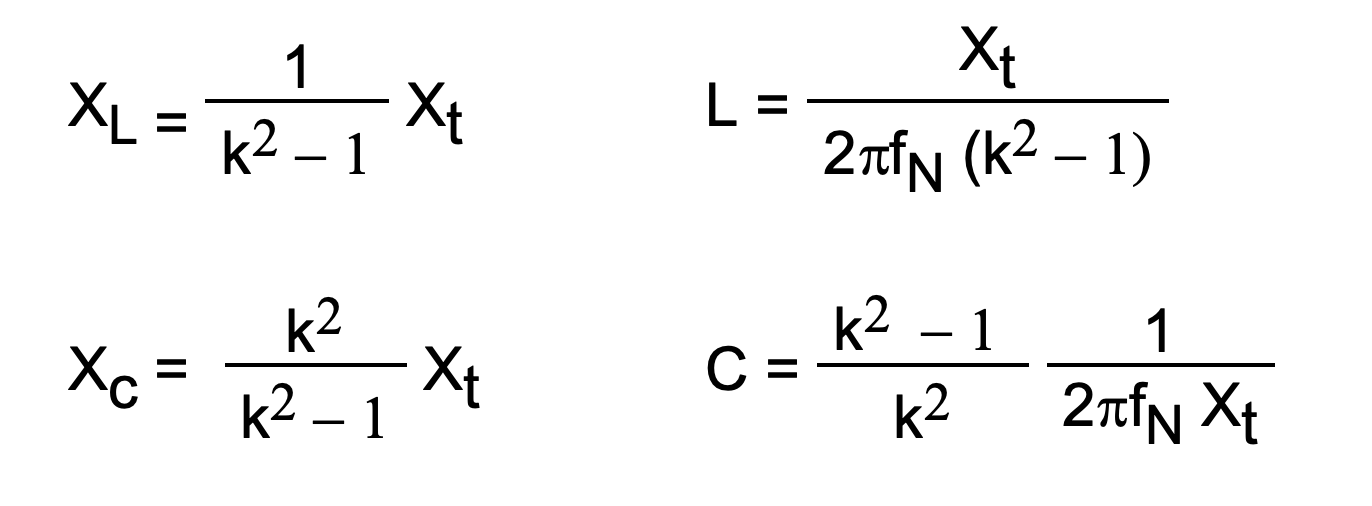 Preciso che, se i condensatori sono collegati a triangolo, come richiede anche il lettore, si deve considerare l’equivalente stella. Si possono allora determinare i valori della reattanza capacitiva (Xc) e di quella induttiva (XL) assumendo k = fa/fN come rapporto tra la frequenza di accordo e quella nominale.