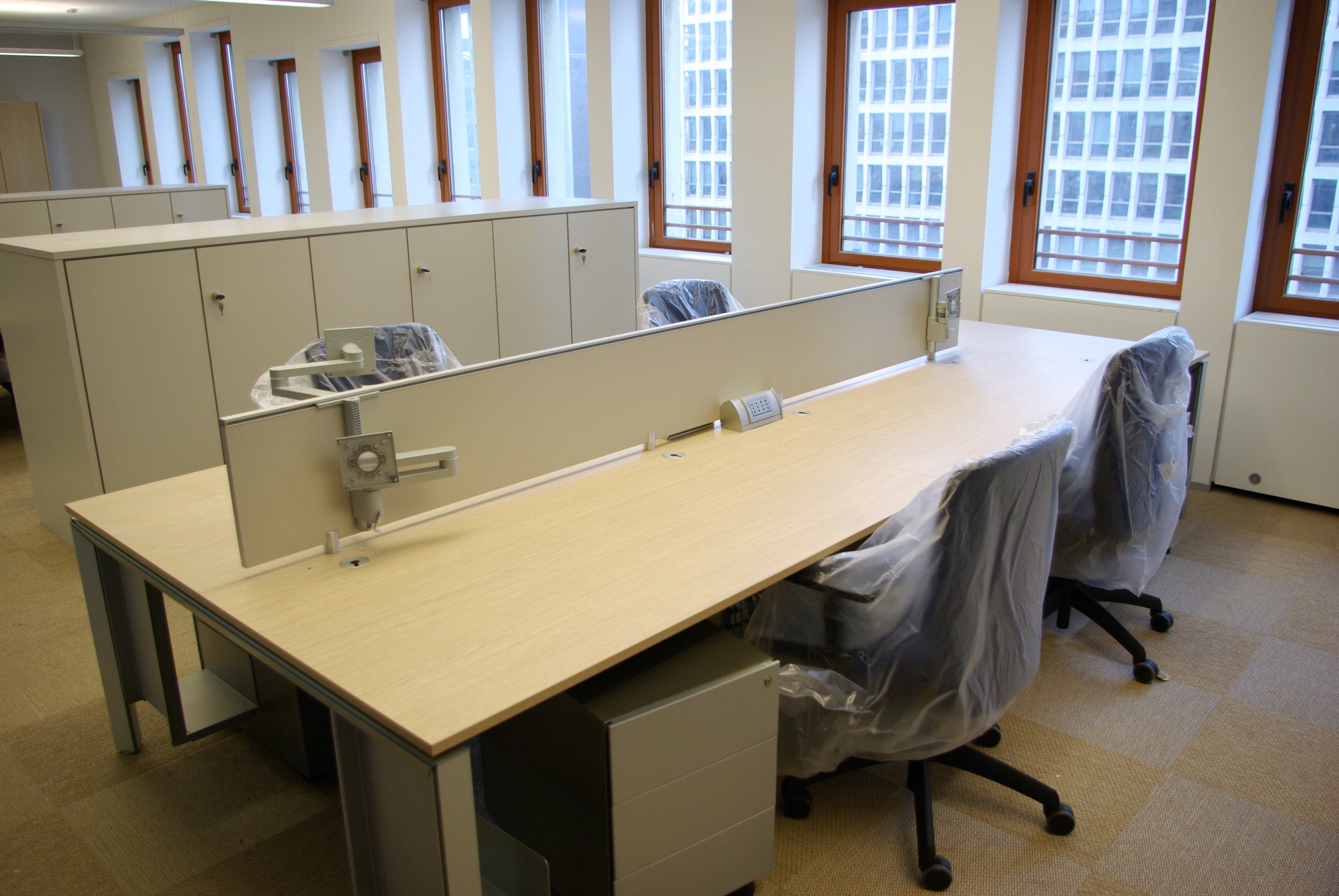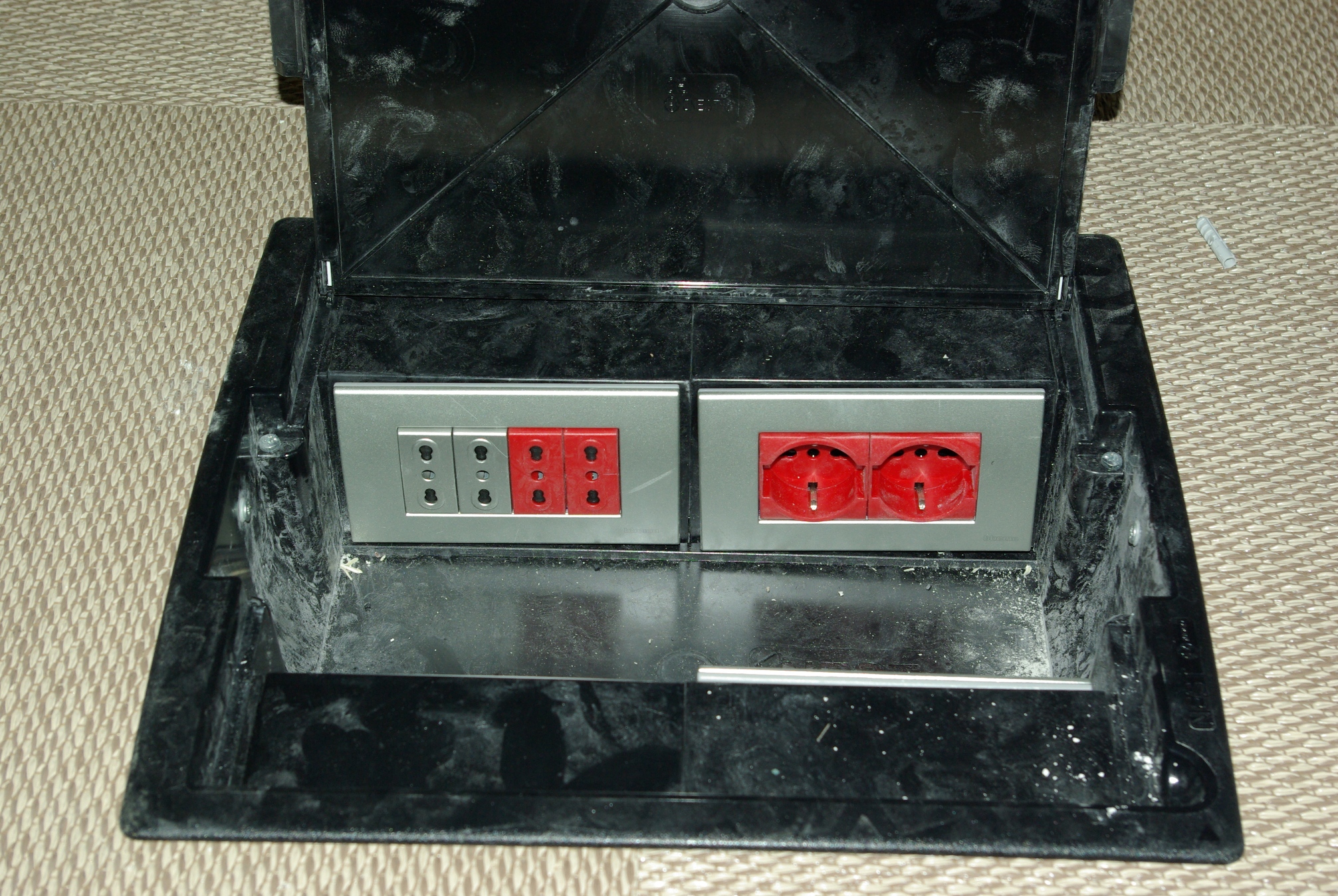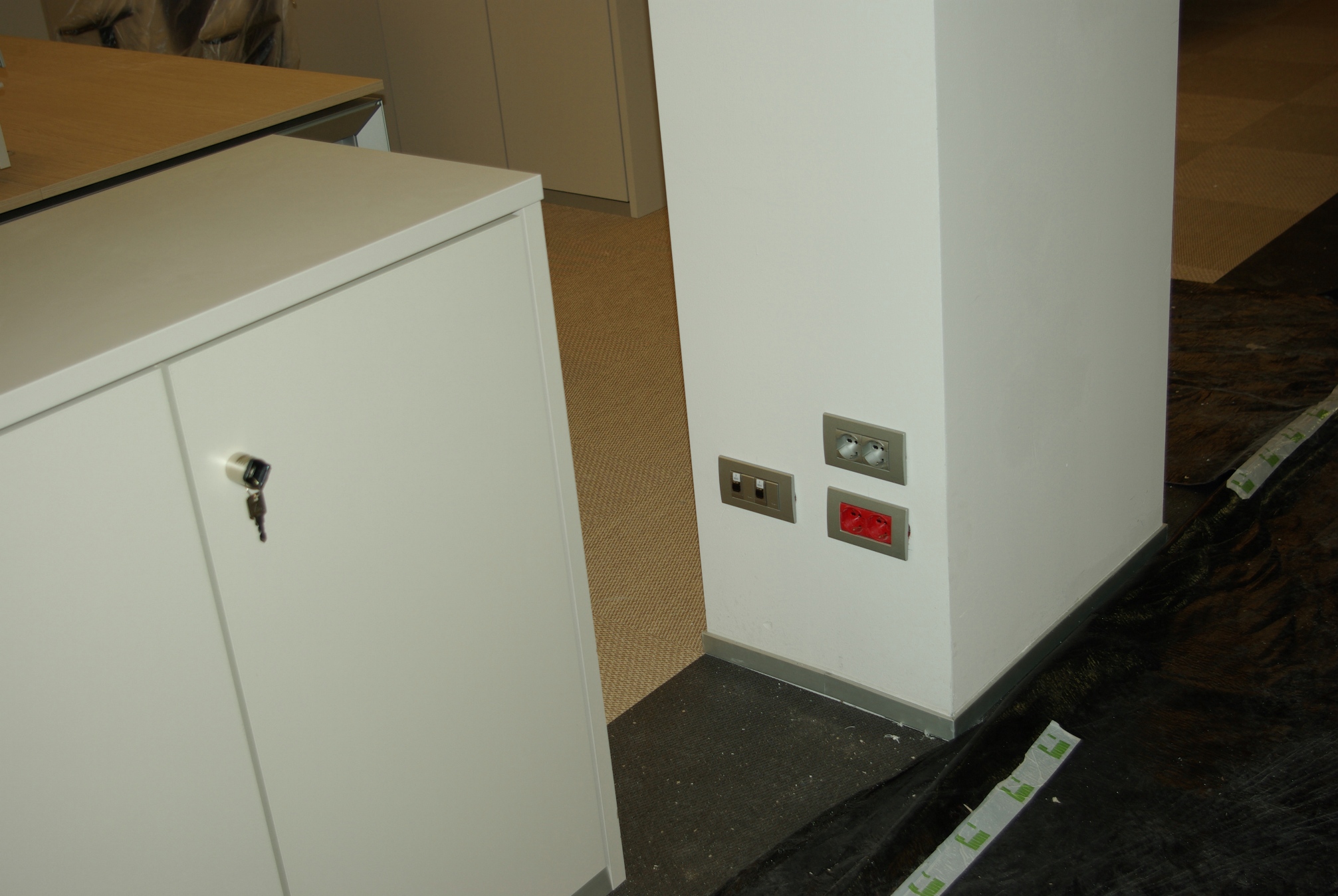 Le prese poste sotto le scrivanie sono molto razionali per la distribuzione dei cavi ed il collegamento delle apparecchiature, ma risultano eccessivamente scomode per il collegamento di apparecchi di uso comune quali i carica batterie dei cellulari, l’alimentazione di PC portatili o tablet. Allo scopo sono state previste delle prese anche sopra le scrivanie