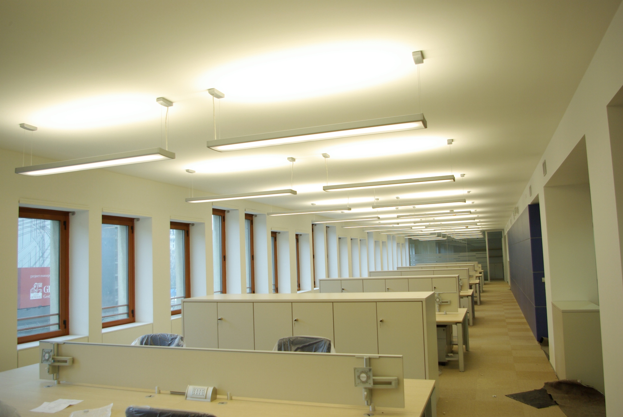 La notevole evoluzione dell’informatica ha praticamente invaso ogni settore, in particolare quello degli uffici, dove il corretto funzionamento degli apparati dipende sempre di più dalla corretta alimentazione elettrica, pena la perdita di preziosi dati e configurazioni. La continuità elettrica normalmente è garantita dai gruppi statici di continuità UPS. Questi possono essere dedicati al singolo computer o centralizzati ed alimentare anche altre utenze. Nel caso di alimentazione da UPS centralizzata si rende necessaria una distribuzione dell’energia elettrica che deve essere ben distinta da quella ordinaria, soggetta ad interruzioni più o meno brevi. Oltre ai circuiti e alle condutture per l’energia elettrica si dovranno distribuire anche le linee per la trasmissione dei dati, che devono essere separate da quelle dell’energia. L’utilizzo di video terminali richiede anche una corretta illuminazione dell’ambiente, garantendo il contenimento dei riflessi e limitando l’abbagliamento fastidioso e dannoso per gli occhi. La soluzione di apparecchi con luce diretta e indiretta garantisce un comfort visivo ottimale.