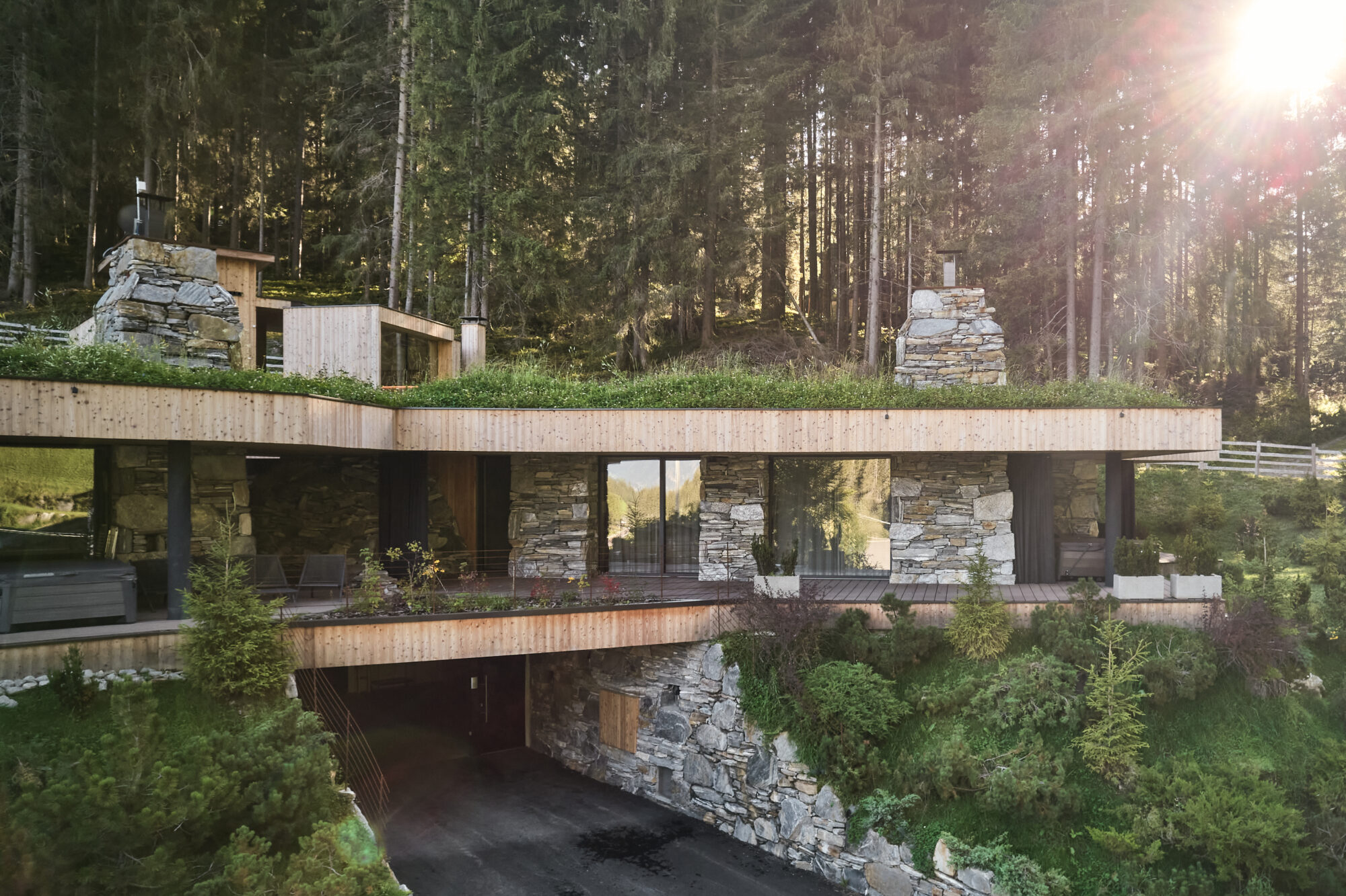 A occuparsi della progettazione, l’architetto Martin Gruber: «Disegno le mie architetture partendo dal contesto, dalla cultura e dalle funzioni, plasmando forme e materia alla ricerca di uno spazio identitario – afferma –. Costruire ai margini della foresta è un privilegio: pietra e legno di origine locale si fanno interpreti delle complesse relazioni fra abitazione e paesaggio. Nulla è stato trascurato in questo progetto, neppure i locali di servizio».