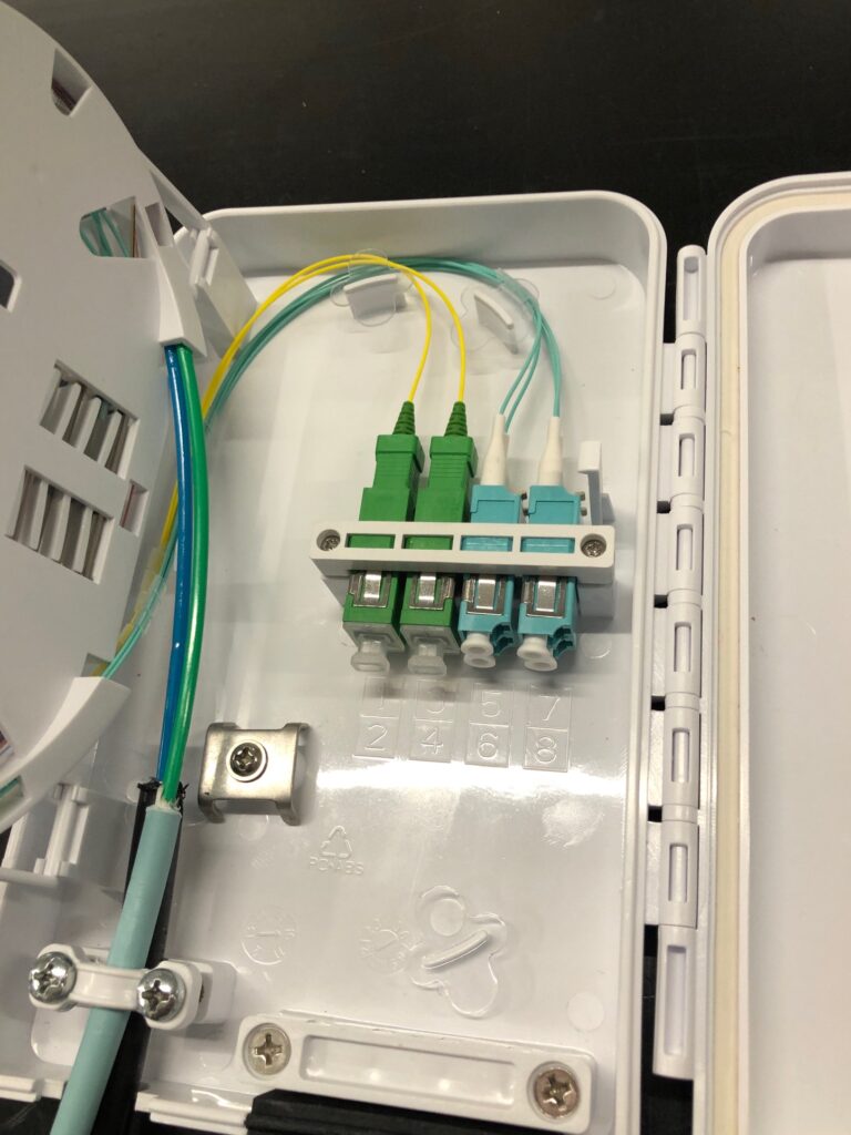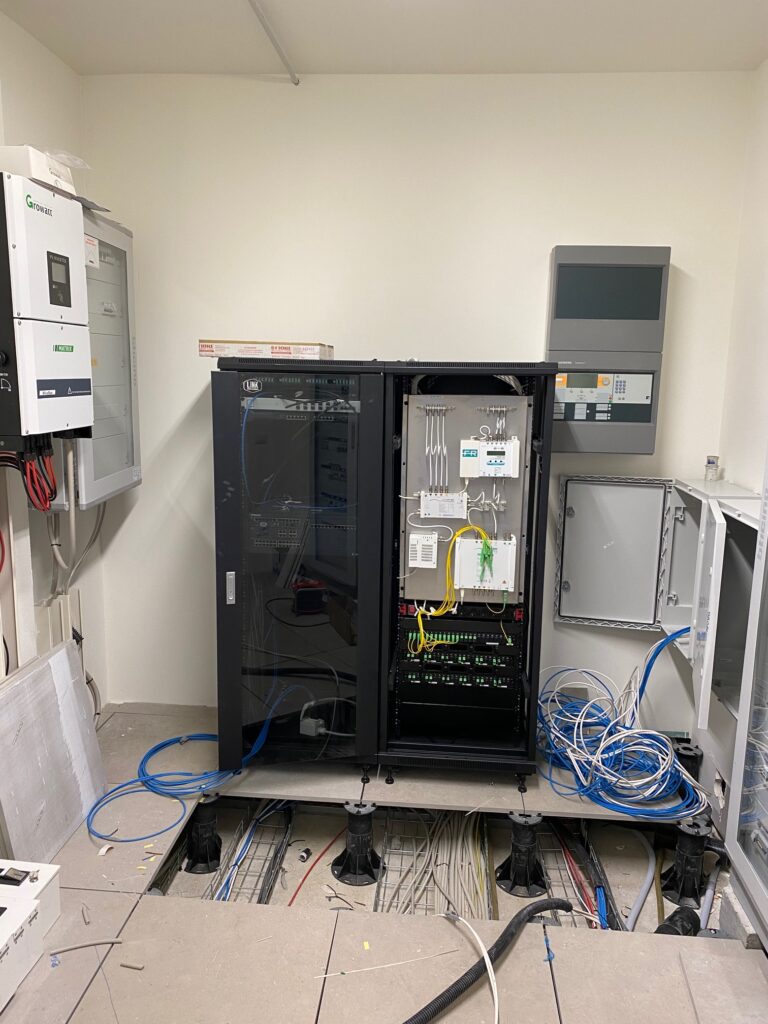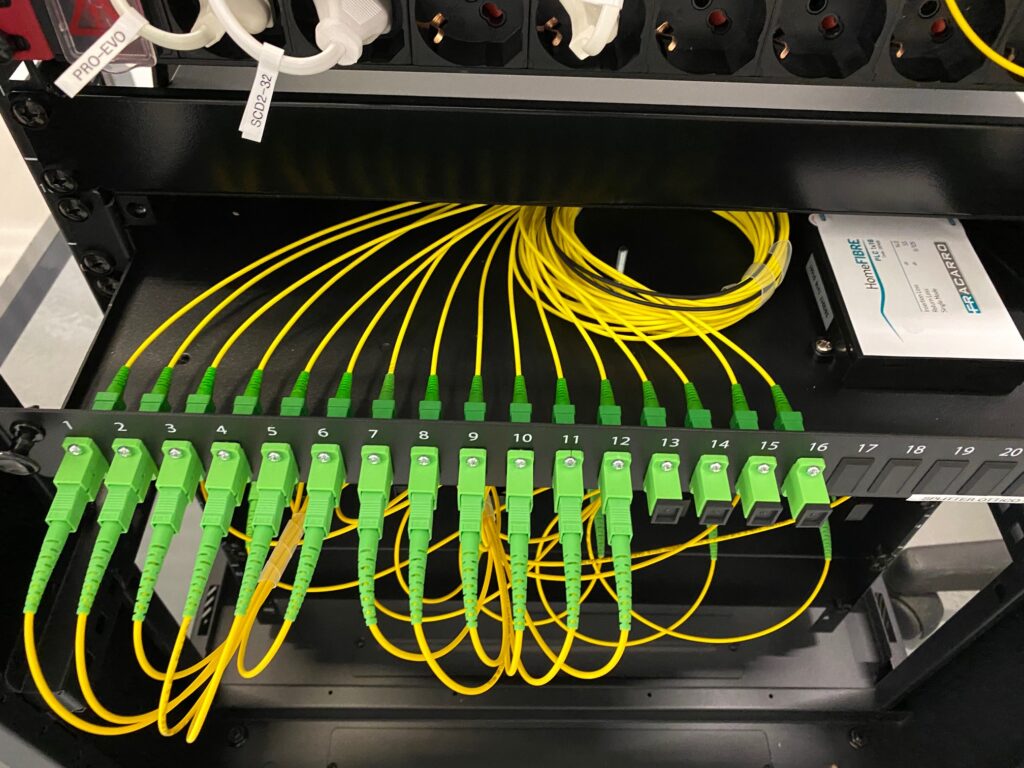 Tutte le connessioni ottiche sono con fibra Single Mode 9/125, connettorizzata SC/APC, mentre i ricevitori ottici installati sono gli OPT-RX QUAD con quattro uscite legacy universali: 3 uscite servono i rispettivi 3 appartamenti della linea verticale, la quarta svolge la funzione di presa test. All’interno di ogni appartamento un partitore PA3 collega il segnale alle 3 Prese Demix PDM00 e su ogni uscita è disponibile il segnale TV/SAT. La sintonia LCN dei canali SAT è stata ottimizzata in laboratorio: su richiesta del cliente, viene assegnata la priorità numerica ai canali più interessanti e la suddivisione per contenuto (news, programmi per bambini, sport, ecc.). Le sottocentrali sono condivise con l’impianto dati, anch’esso impiegante la fibra ottica per le distribuzioni orizzontali. Per quello che riguarda le tempistiche di installazione, i tecnici dell’azienda installatrice hanno impiegato 2 giorni per la fase elaborata in ufficio (portata avanti da una sola persona), in cui sono state ultimate la progettazione esecutiva e la redazione di schema definitivo, planimetria centrale e sottocentrali, fascicolo tecnico dell’impianto e lista canali e LCN; altri due giorni, e tre tecnici, sono occorsi invece in cantiere (installazione e orientamento antenne, installazione e collegamento rack, attivazione sottocentrali, rilievi misure e test point ottici e RF, verifica e test su tutte le circa 100 prese), mentre in laboratorio, per il cablaggio centrale su armadio rack, il cablaggio delle sottocentrali su pannelli metallici, la programmazione e i test sulle apparecchiature e l’ordinamento lista LCN per la creazione di chiave USB clone, è stato fondamentale il lavoro di 2 tecnici per 4 giornate totali. Grazie a una precisa pianificazione delle operazioni e dei tempi previsti e all’attribuzione di ruoli ben definiti, ogni realtà coinvolta nell’esecuzione del cantiere ha portato a termine la propria attività rispettando la timeline assegnata.