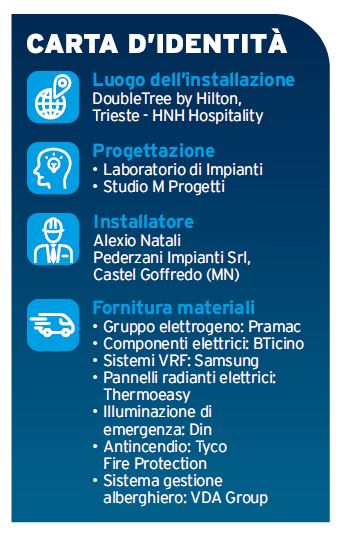 L’integrazione dei sistemi di gestione dell’edificio e delle attività rivolte agli ospiti con gli impianti elettrici è uno dei punti di forza di un hotel 4 stelle, risultato dell’attento restauro e riqualificazione di uno storico palazzo triestino.