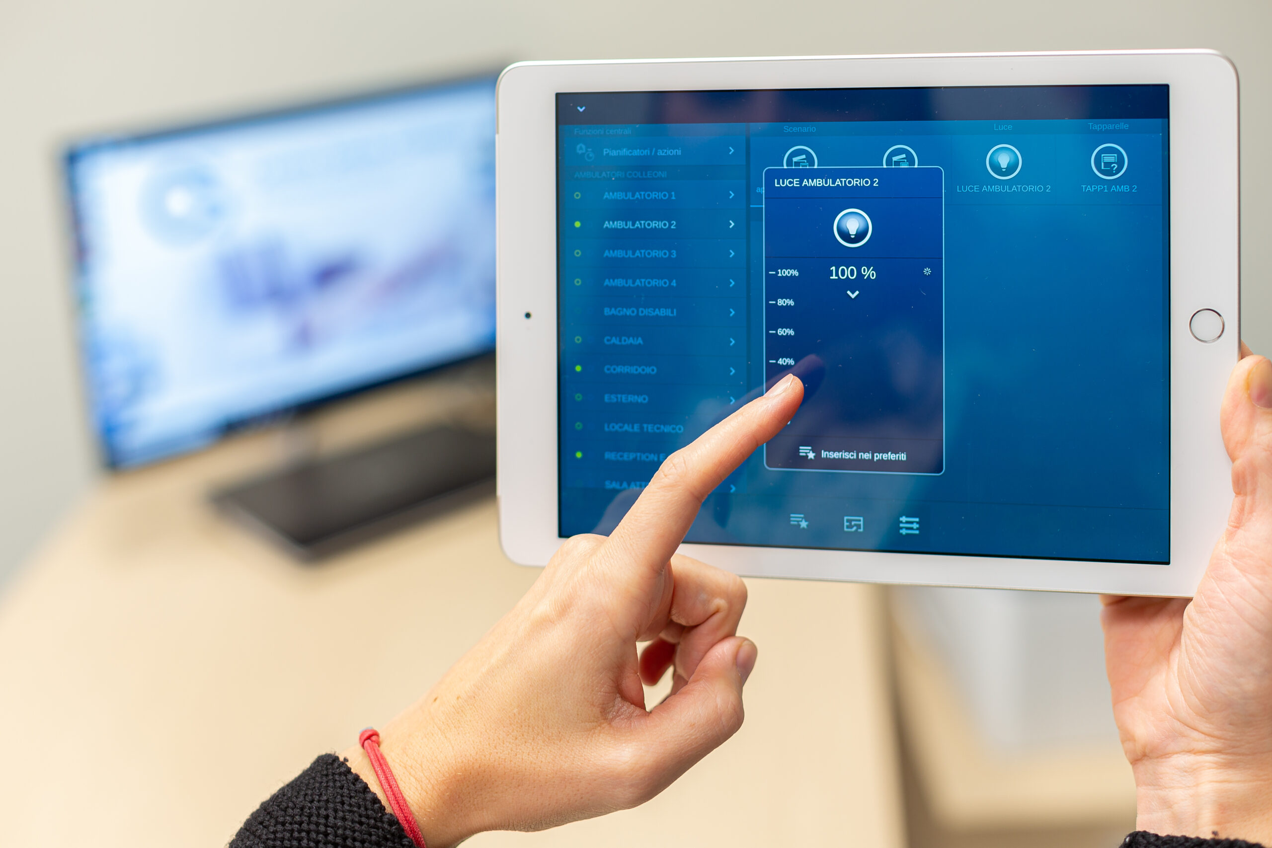 L’utilizzo di specifiche apparecchiature e la necessità di variare l’intensità delle luci o di disattivare componenti dell’impianto con automatismi e comandi vocali durante l’attività poliambulatoriale, ha richiesto di poter gestire differenti scenari attivabili anche attraverso comando vocale; per questo è stato richiesto un sistema di building automation all’avanguardia.