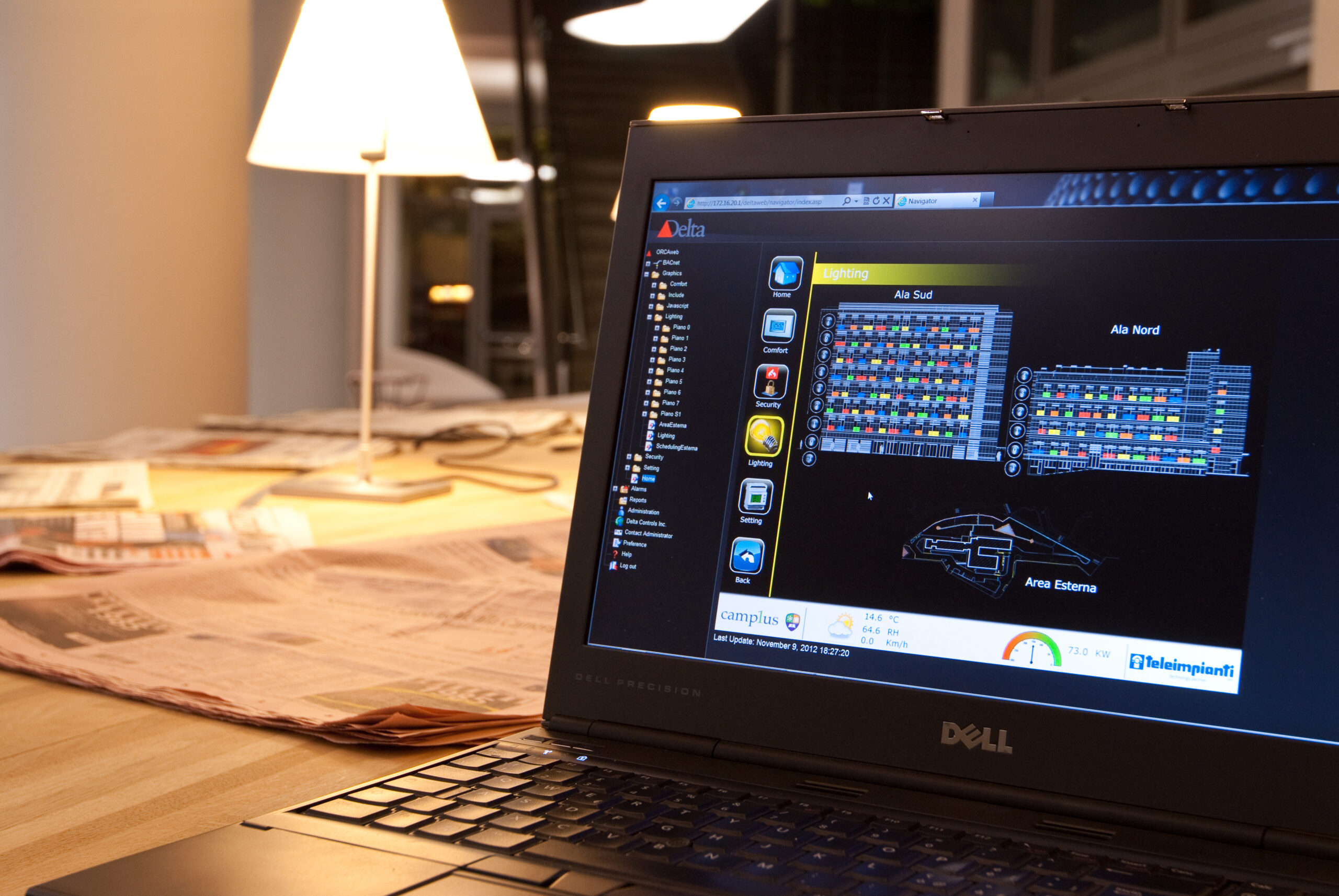 A parere del progettista l’aspetto più innovativo sta nell’architettura a intelligenza distribuita “le logiche di automazione risiedono all’interno delle periferiche in campo, mentre al server centrale sono demandati il servizio web per l’interfaccia utente e la raccolta dei dati storici. I controllori in campo sono dotati di intelligenza e possono dialogare tra loro peer-to-peer (da pari a pari), ovvero possono comunicare senza l’intermediazione del server centrale. Queste caratteristiche non riguardano solo i controllori con protocollo nativo BACnet, ma anche i sottosistemi gestiti con altri protocolli come l’impianto di illuminazione (LON e DALI), le pompe ad inverter (LON), i multimetri (Modbus), l’impianto audio/video (LON).