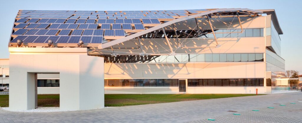 La nuova sede Arval di Scandicci (FI) è un edificio in Classe A, autosufficiente a livello energetico, con un peculiare profilo architettonico che le ha fatto guadagnare il nome di “Saetta fotovoltaica”.