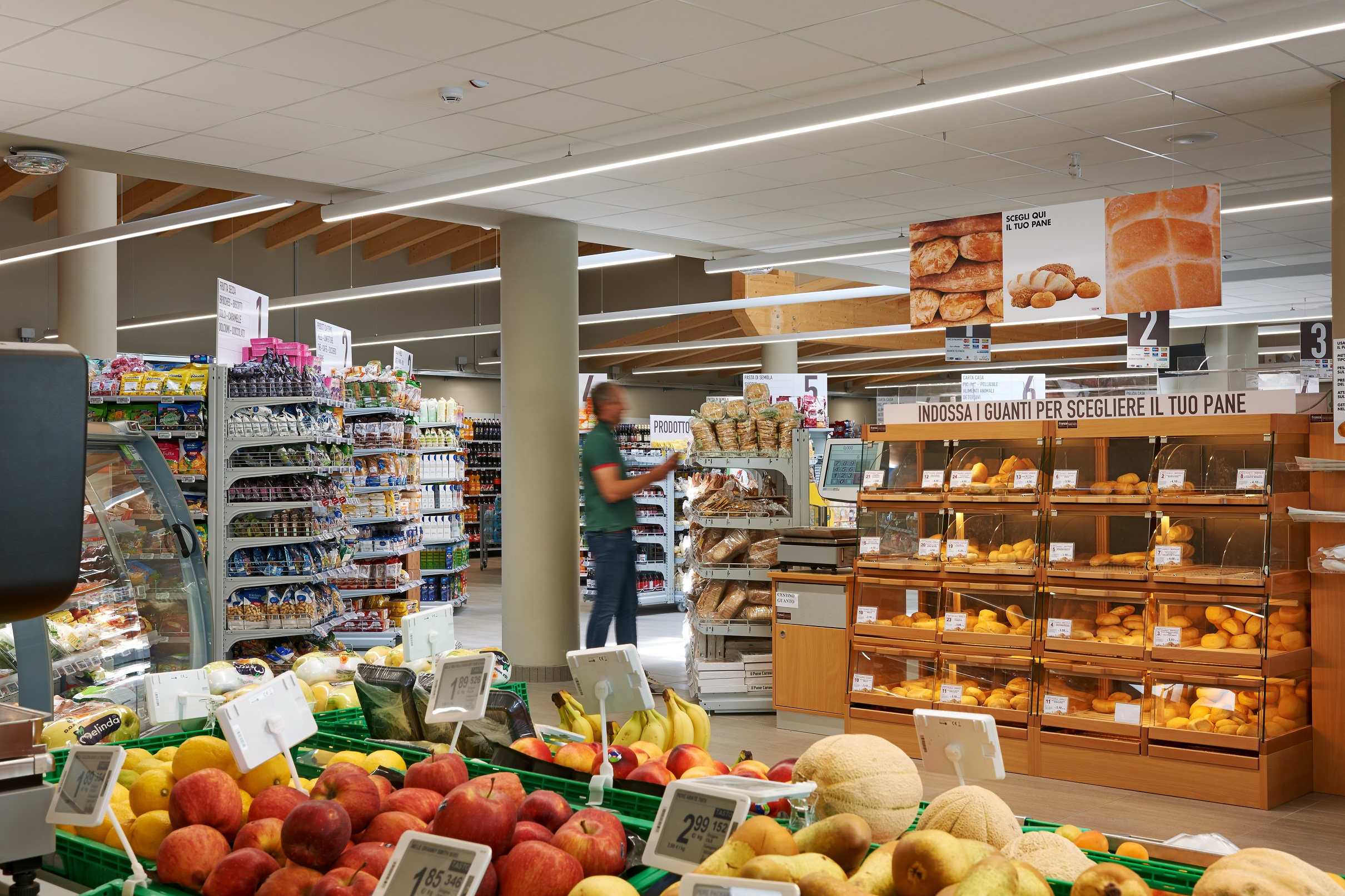 L’edificio, progettato dall’architetto Stefano Giongo di Lavarone e realizzato grazie alla collaborazione di Sira Soc. Coop. di Rovereto (TN) e Coop S.E.I. di Dro (TN), si articola su tre piani, dove trovano posto il negozio di 600 metri quadrati, l’area amministrativa e una lavanderia automatica; a completare l’opera due parcheggi, il primo sotterraneo e il secondo esterno al punto vendita.