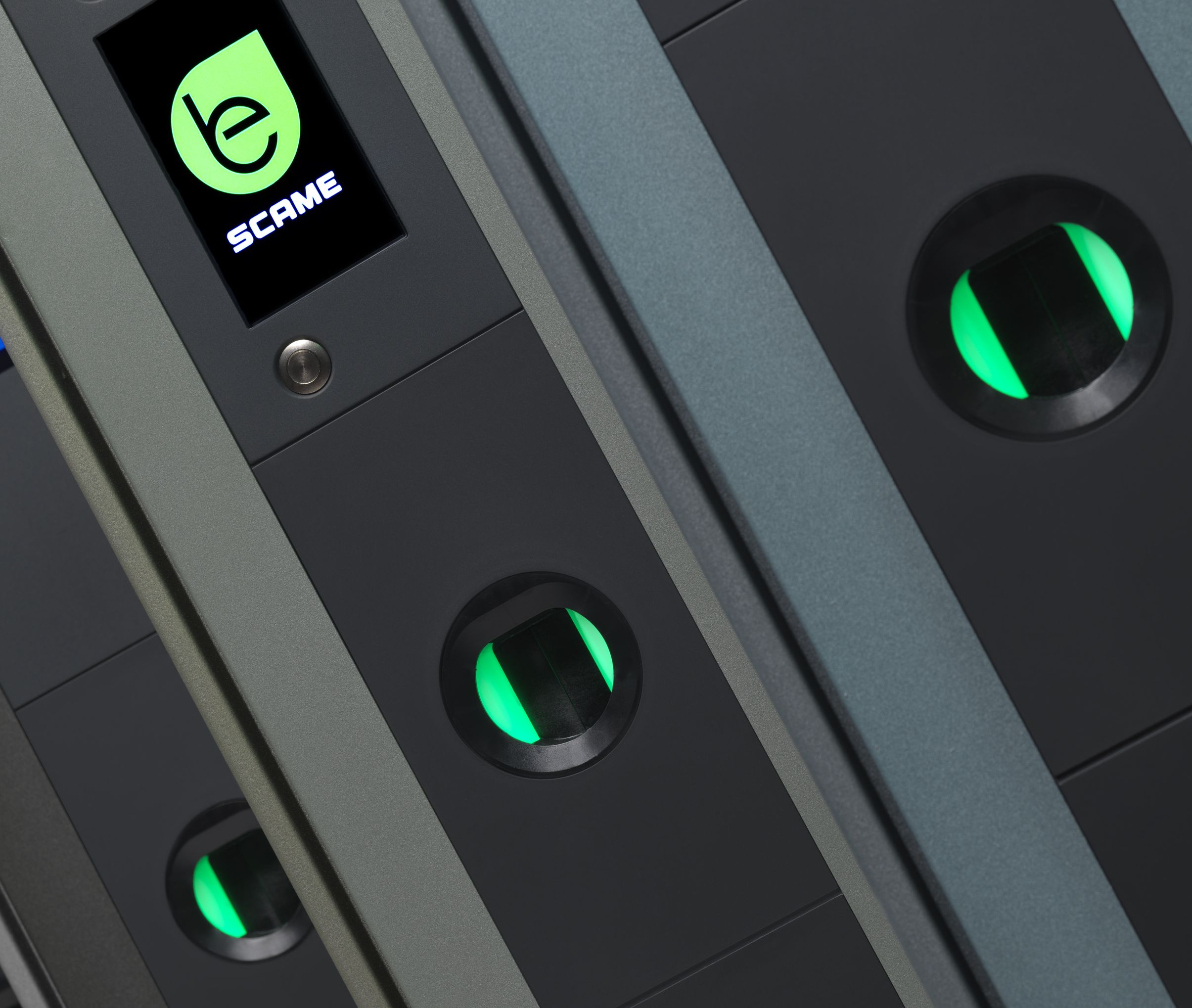 Disegnate dallo studio di product design Trussardi+Belloni le nuove stazioni di ricarica Scame della serie BE-A e BE-B sono realizzate in acciaio con finitura tramite verniciatura a polveri che ne aumenta ulteriormente la resistenza alla corrosione e agli agenti aggressivi, rappresentando al contempo un elemento estetico che esalta l’eleganza e lo stile rigoroso del prodotto, enfatizzato dalla fascia centrale in tecnopolimero “halogen free” che ospita display e prese, conferendogli immediata distinguibilità.