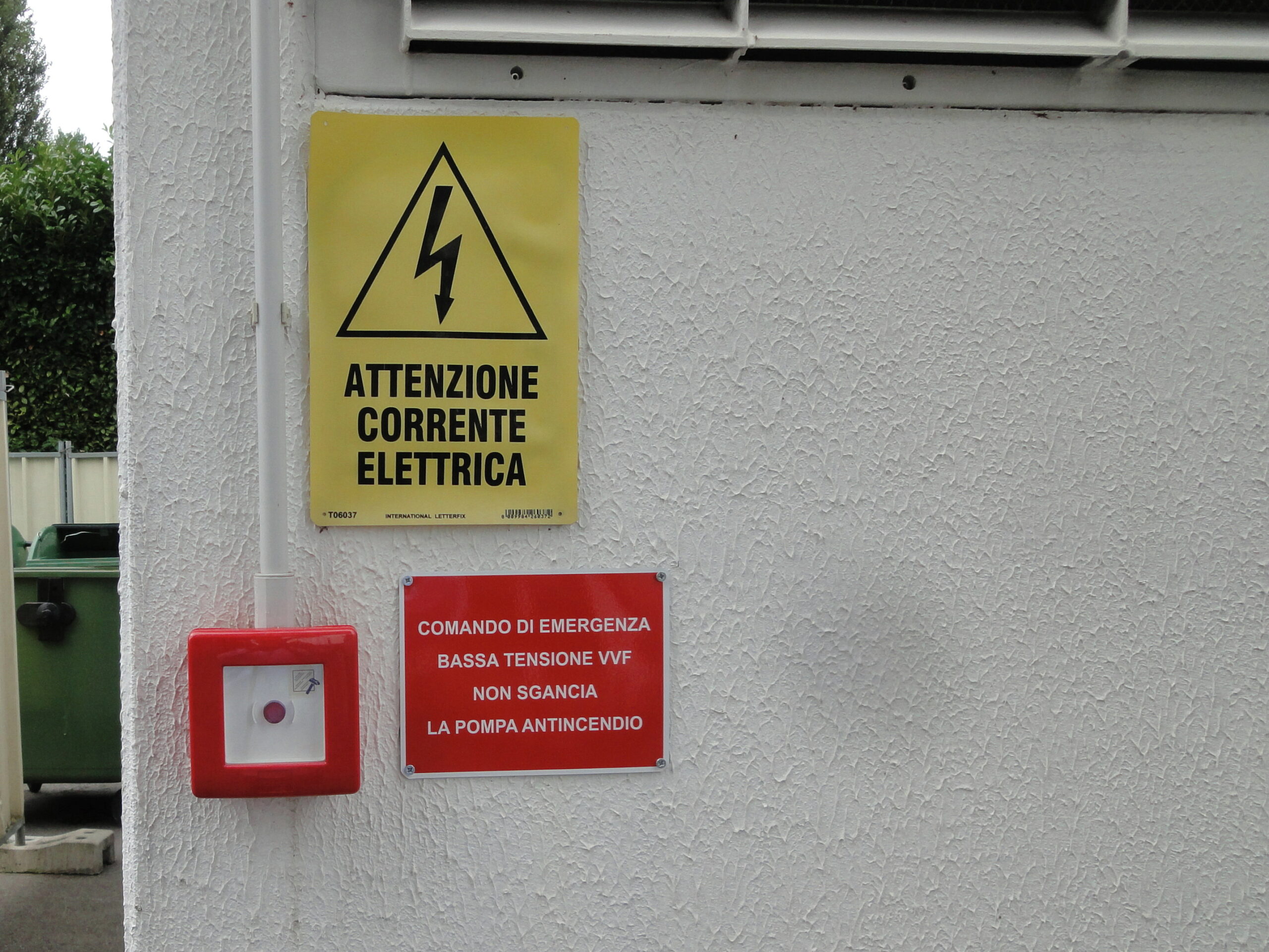 La corretta progettazione deve tenere conto, ad esempio, di alcuni impianti che in caso di incendio devono continuare a funzionare quali: pompe e ascensori antincendio. Si rende necessaria una cartellonistica chiara e inequivocabile che, nel momento dell’emergenza, non possa creare incertezze sulla esatta funzione. In commercio purtroppo non esistono cartelli su misura con la frase dedicata a noi necessaria.
