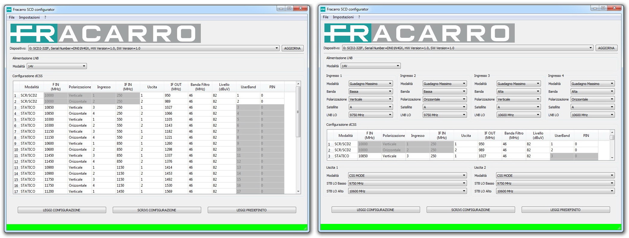 Modalità fissa IF-IF con 32 transponder per Sky e Tivùsat