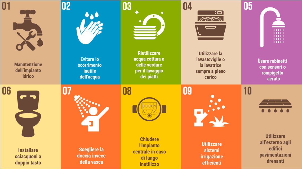 Di seguito i 10 punti della guida ENEA contro lo spreco d’acqua: