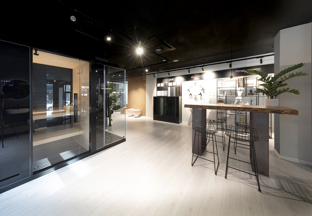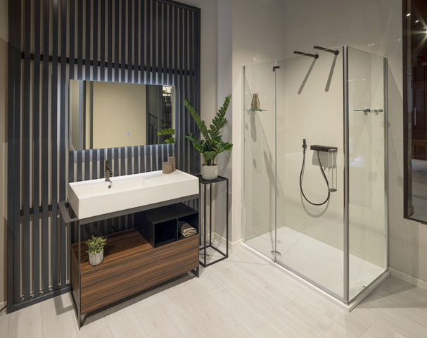 A completare il format espositivo, uno spazio polifunzionale in cui selezionare e personalizzare i prodotti in funzione del proprio “progetto bagno”, che si articola in due aree: la materioteca, sorta di wunderkammer di finiture e materiali, e una zona dedicata alla presentazione della gamma prodotti e delle novità offerte dalle singole aziende. Il tutto sotto la guida di personale competente per scegliere e coordinare al meglio stili, forme e finiture dei prodotti di Fima Carlo Frattini, Megius e Scarabeo al fine di creare un armonico e distintivo total look.