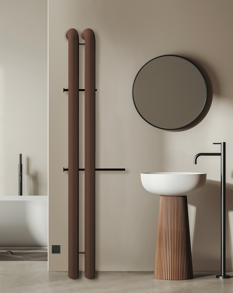 Oltre alla versione scaldasalviette già a catalogo (CHEM-S), anch’essa declinabile in vari modelli grazie all’aggiunta di elementi tubolari quadrati applicati ad uno o due elementi principali, è stato introdotto un nuovo modello completo di maniglione reversibile portasalviette sul retro e di un appendino doppio per gli accappatoi (CHEM-M).