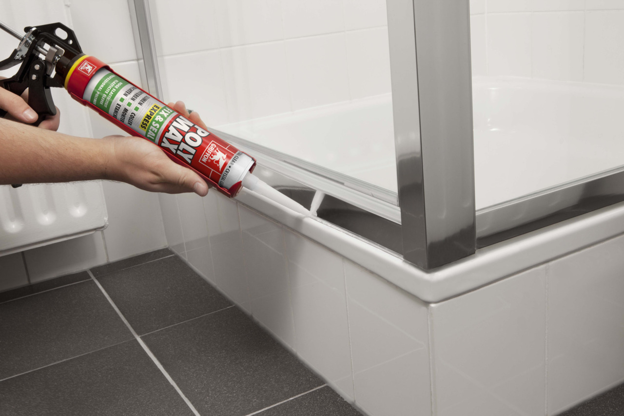 POLY MAX® BIANCO: incolla assembla e sigilla! Adesivo di montaggio e sigillante privo di solventi, con elevata elasticità e presa rapida. Sigilla il piatto doccia. Incolla portasciugamani, portacarta igienica, sanitari. Ideale per superfici umide o bagnate,  no muffa,  verniciabile. Adatto sia per interni che per esterni. Certificato Emi-Code EC1Plus e TUV.