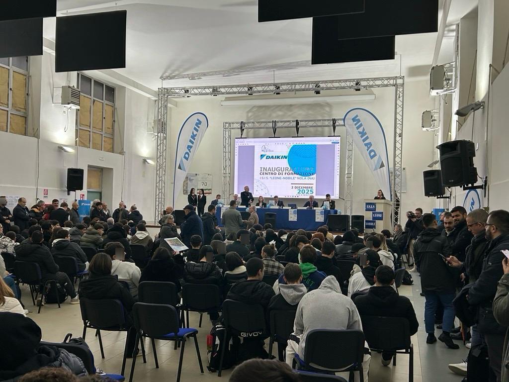 Daikin Italia ha inaugurato all’I.S.I.S. Leone-Nobile di Nola (Na) il suo decimo Centro di Formazione sul territorio nazionale, un progetto che consolida un modello di collaborazione strutturata tra scuola e impresa e che punta a favorire un raccordo diretto tra formazione tecnica, innovazione e mondo del lavoro.