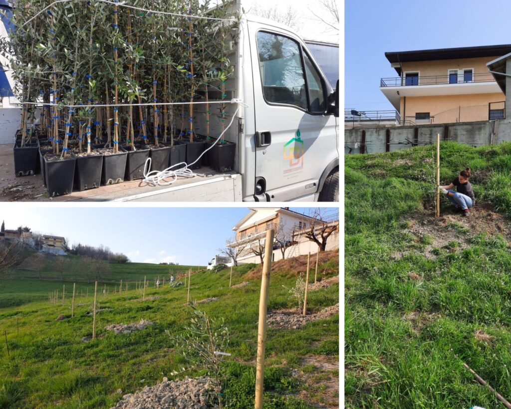 Bruno ed Erica Bergoglio hanno deciso di dare una forma reale a questo grande risultato: hanno piantato 40 ulivi di due anni nel terreno sottostante l’azienda.