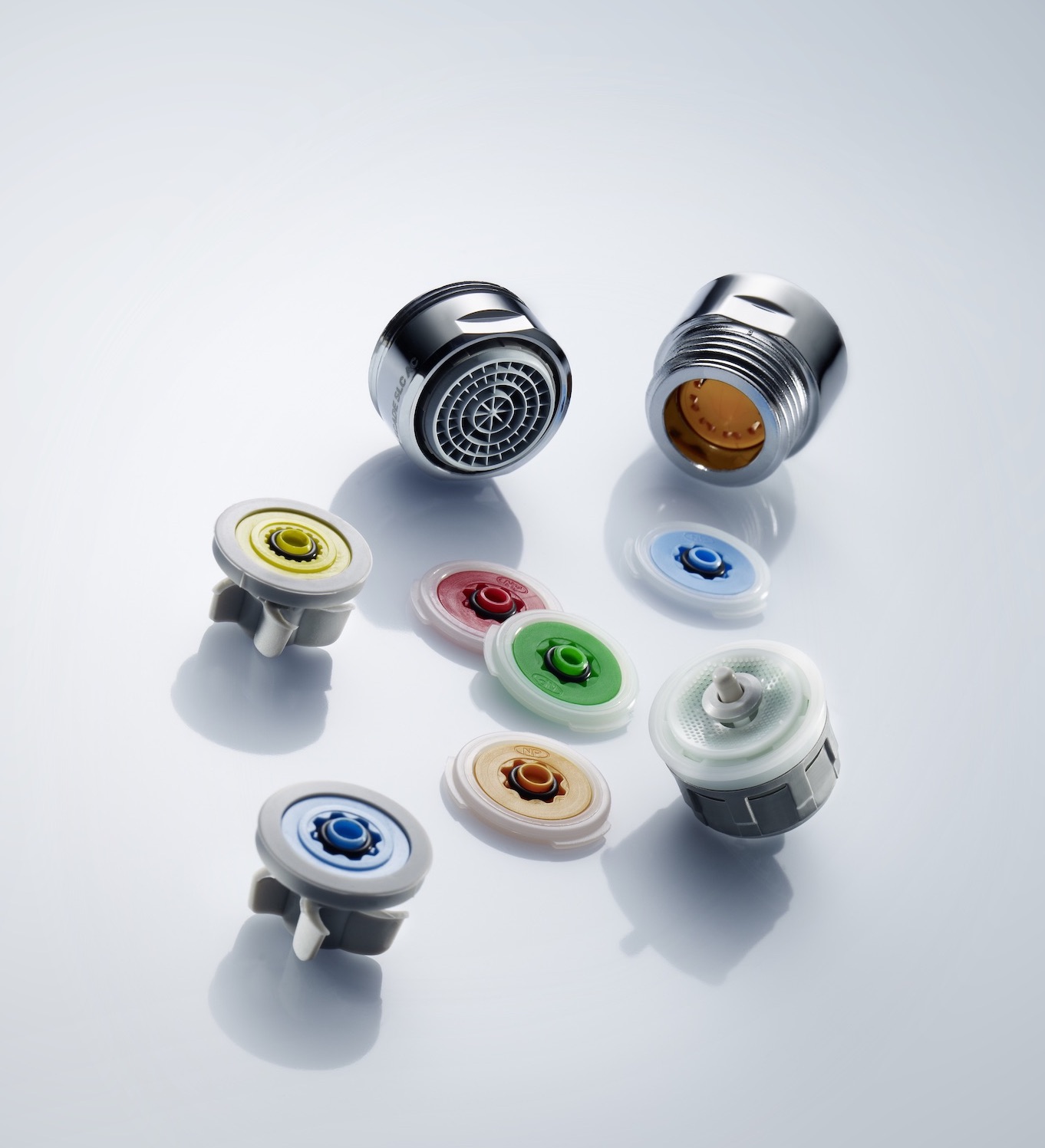 Neoperl® propone due tipologie di prodotti: gli aeratori con limitatori di flusso che riducono il flusso ad un valore ottimale in modo da corrispondere ad un un range di pressione definito (ad es. 3 bar) e gli aeratori con regolatore di portata incorporato (PCA® – Pressure Compensating Aerator) che, grazie alla tecnologia del regolatore di portata incorporato, erogano un volume d’acqua costante, a prescindere dalla pressione della linea.