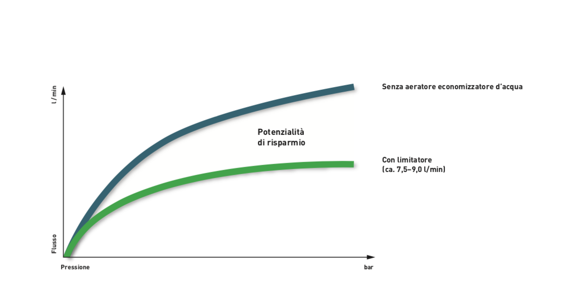 Gli aeratori con limitatori di flusso riducono il flusso ad un valore ottimale