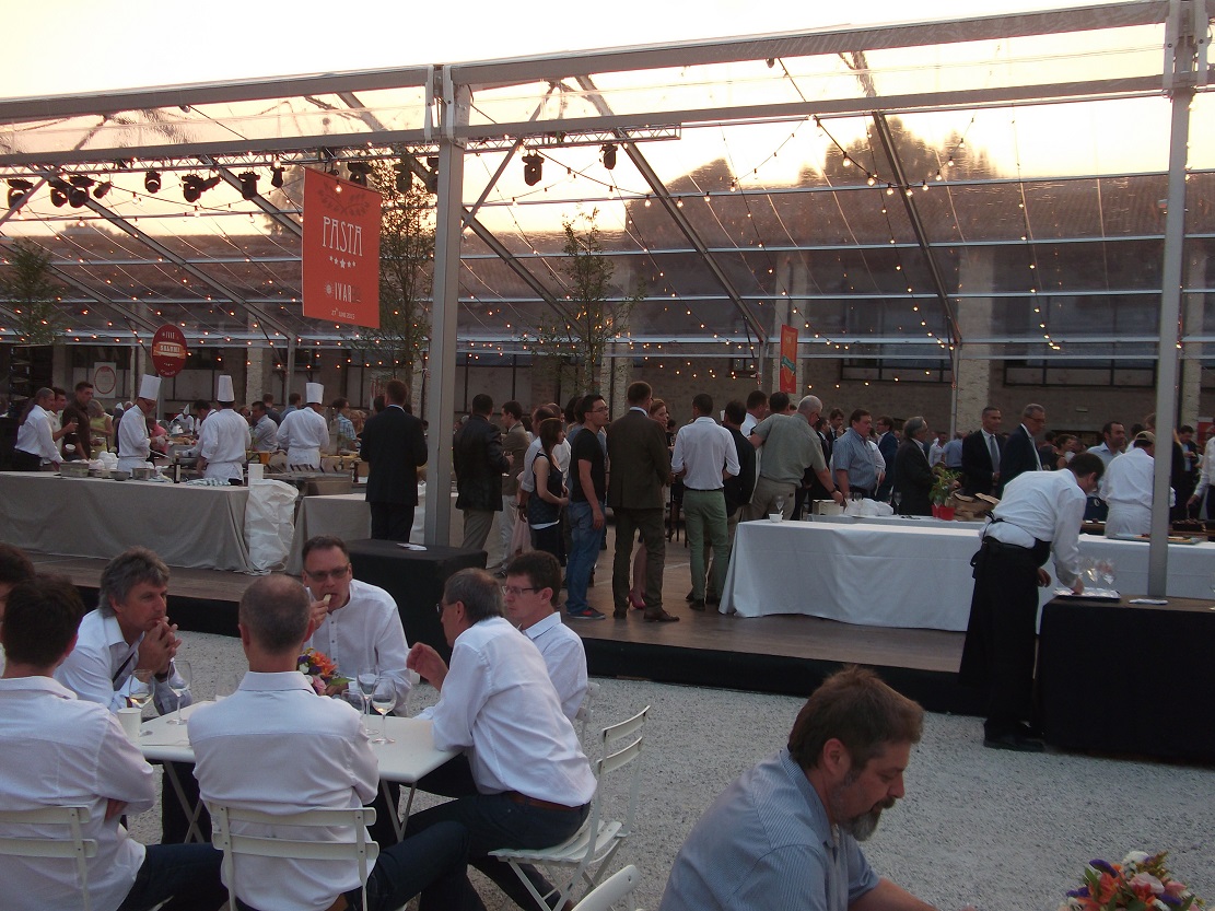 Lungo tutta la superficie del cortile del Museo sono state allestite dodici zone tematiche: vini, drinks, pasta, riso, formaggi, salumi, street food, pizza, barbecue, pasticceria e gelato. Tutto cucinato al momento per deliziare gli ospiti con lo show-cooking in una vera e propria fiera del gusto, molto gradita dagli invitati.