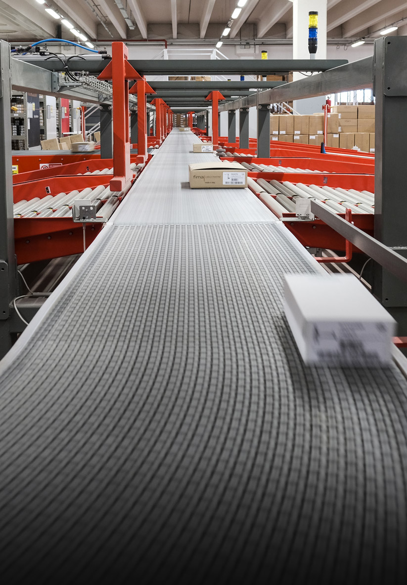 A questi si aggiunge infine un sorter di smistamento delle confezioni finite per la preparazione automatizzata di tutti gli ordini, in grado di gestire simultaneamente tutti quelli presenti a sistema e a smistarne oltre 200 contemporaneamente grazie a 40 scivoli e alle oltre 400 locazioni temporanee in cui vengono collocati i pacchi in attesa del completamento. Le logiche di industria 4.0 hanno permesso inoltre di integrare l’impianto al sistema VMS aziendale per permettere la richiesta con priorità di articoli mancanti o urgenti per il completamento dell’ordine.