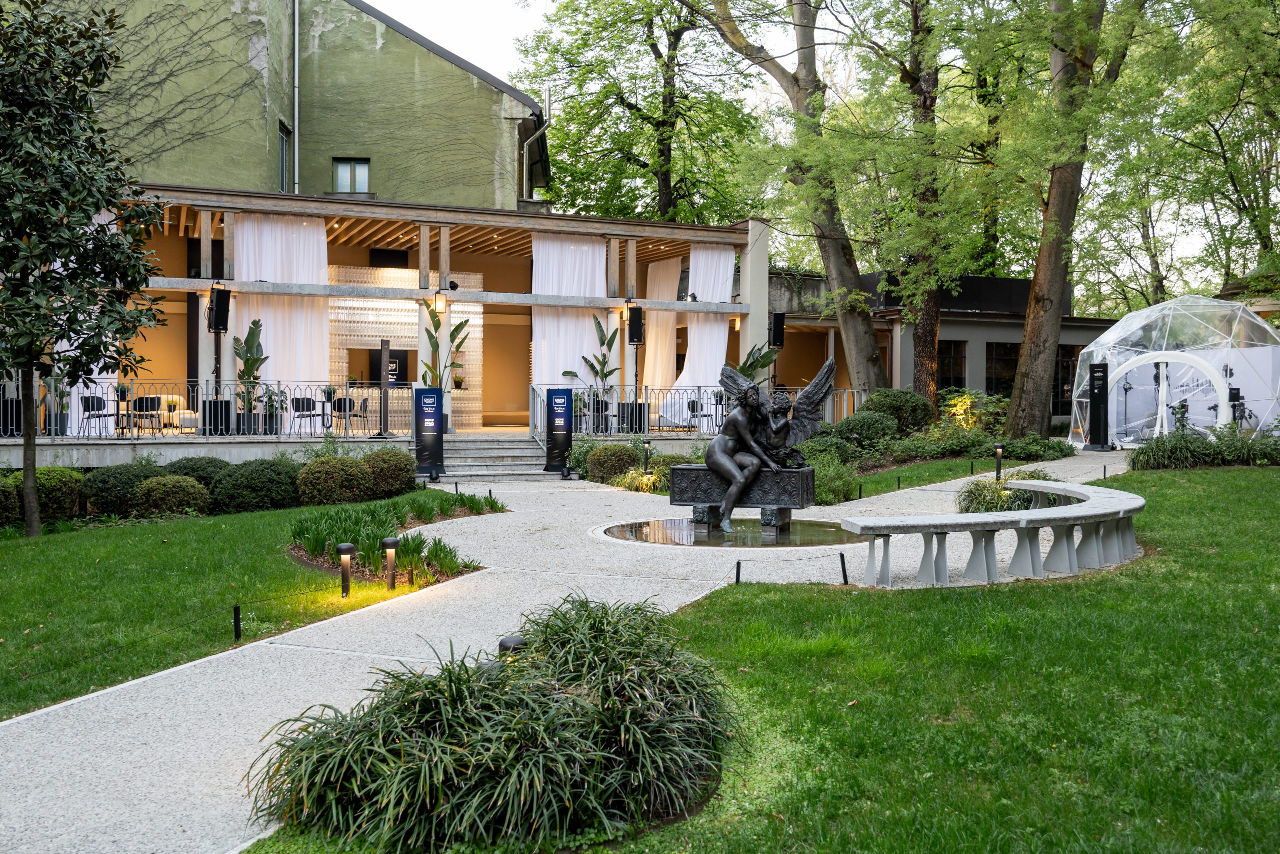 Nel suggestivo giardino del palazzo, è possibile concedersi un momento di tranquillità presso l’Aqua Atelier, uno spazio dedicato all’ispirazione e alla creatività dove comporre il proprio Aqua Poem, e l’Aqua Bar. Non solo luogo di ristoro per rigenerarsi, l’Aqua Bar intende stimolare una riflessione sulla responsabilità ecologica: costruito con bottiglie riciclate, evidenzia l’impatto ambientale della plastica monouso e il crescente problema dell’inquinamento idrico. Come brand concretamente impegnato nella sostenibilità, Grohe offre soluzioni tangibili per affrontare l’inquinamento da plastica, come i suoi avanzati sistemi di filtrazione domestica che riducono l’uso di bottiglie di plastica monouso. Integrando design e responsabilità ambientale, Grohe continua a plasmare un futuro più sostenibile.