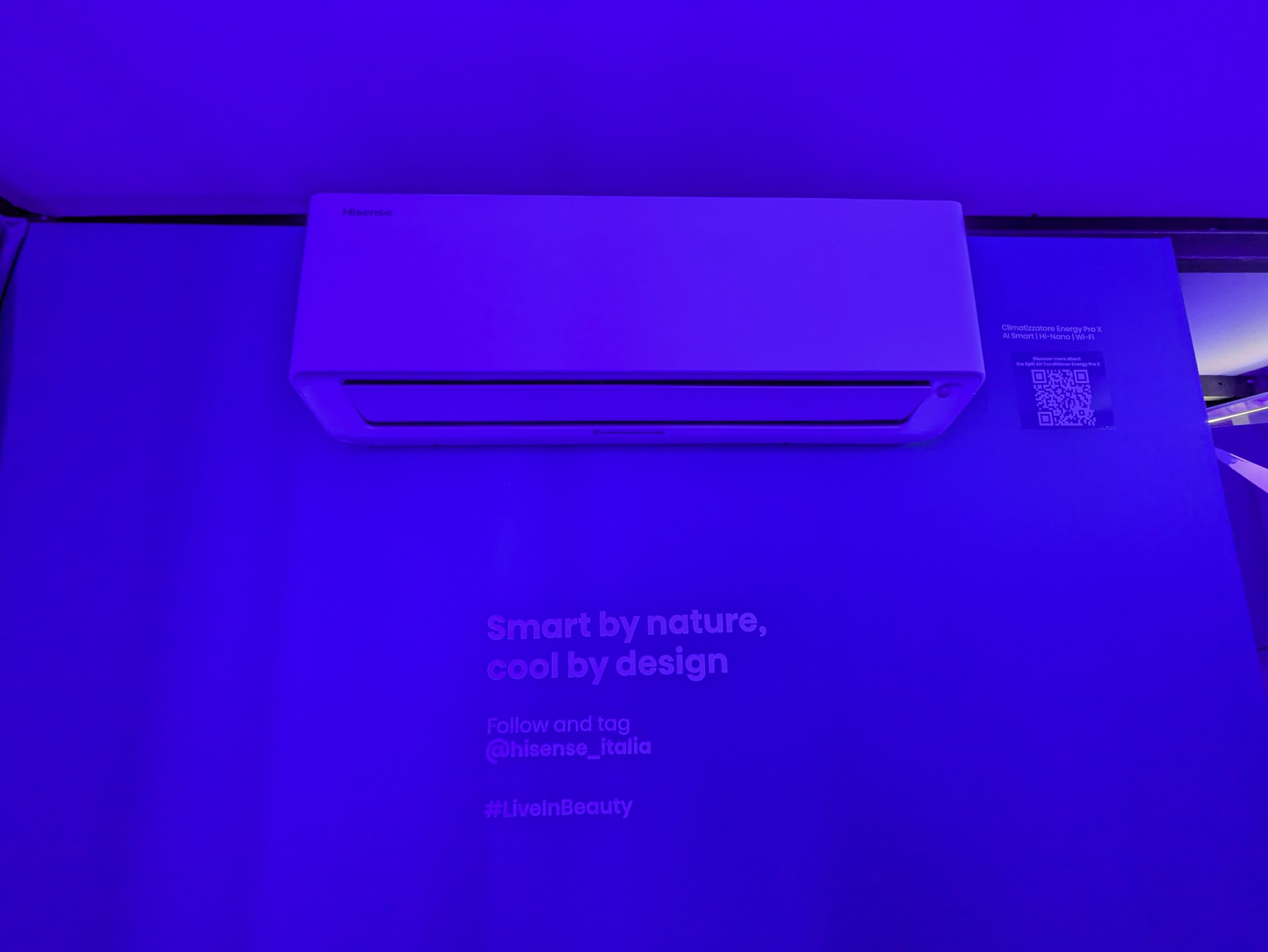 The Cool Zone crea un’atmosfera fresca e avvolgente, come quella del condizionatore Energy Pro X, amplificando la sensazione di leggerezza e benessere. Le pareti traslucide e le luci fredde evocano la purezza del ghiaccio e invitano a sprigionare la propria freschezza e frizzante personalità.