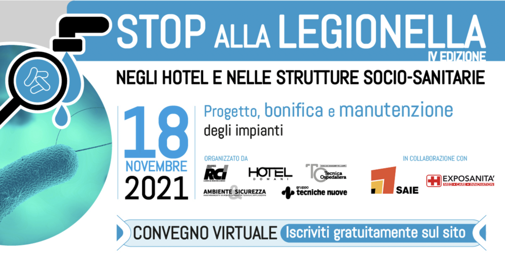 Il Gruppo Tecniche Nuove presenta la nuova edizione dell’evento virtuale Stop alla Legionella negli hotel e nelle strutture socio-sanitarie – Progetto, bonifica e manutenzione degli impianti che prenderà il via il 18 novembre 2021 alle ore 14:30 su un’esclusiva piattaforma ricca di contenuti extra.