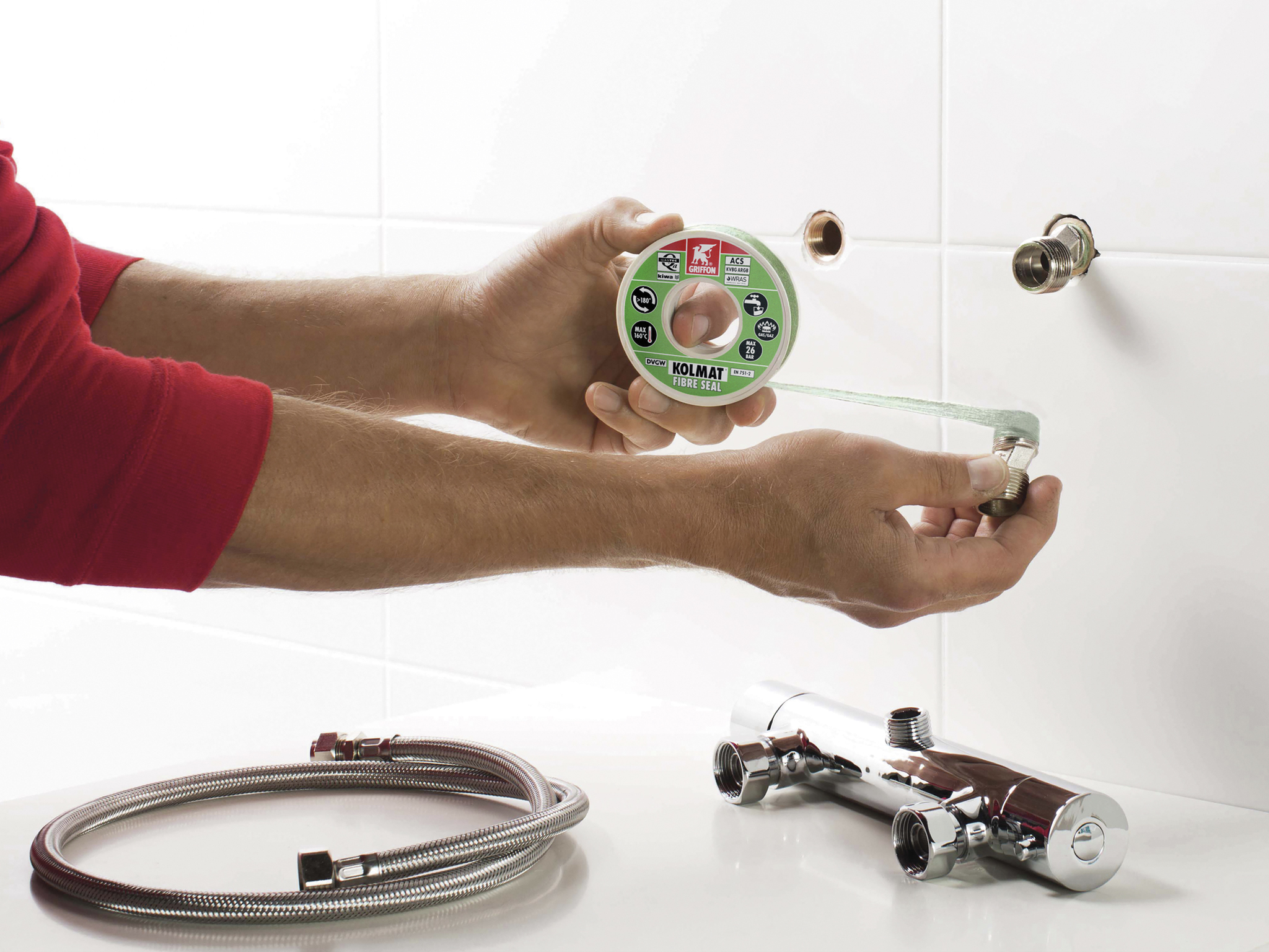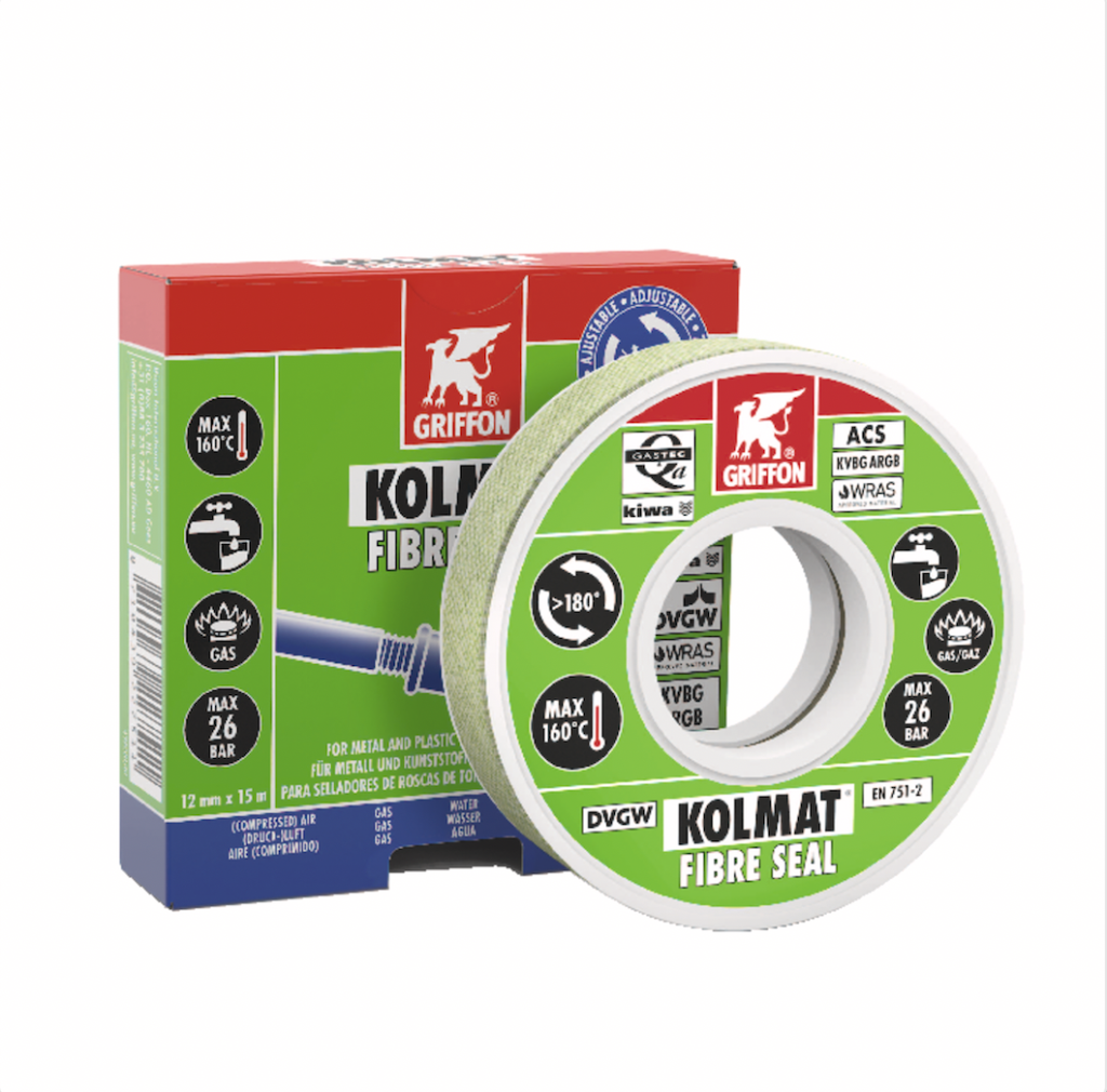 LA LINEA KOLMAT® di GRIFFON® è specifica nella sigillatura di raccordi filettati. Sia che si tratti di acqua, gas o riscaldamento centralizzato, offre soluzioni di alta qualità. Dalle più tradizionali, ad applicazioni anaerobiche fino all’innovativo nastro rinforzato con fibre. Sigillanti, canapa, PTFE etc.