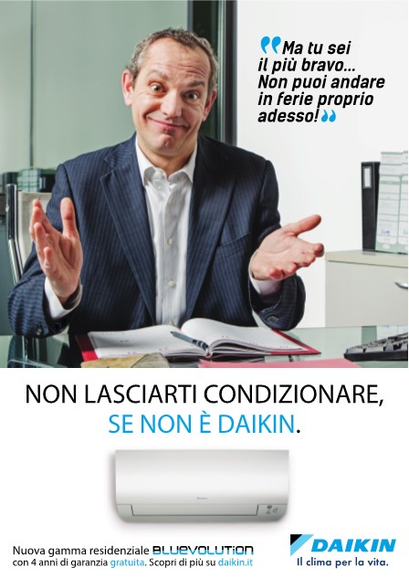 La campagna di lancio dei nuovi climatizzatori Daikin Bluevolution è stata l’occasione per raggiungere anche obiettivi di brand: confermare la leadership di Daikin mantenendo il tono di voce leggero e ironico, creare una connessione più emotiva con i propri consumatori e sviluppare un linguaggio più social con i propri fan. La strategia di fondo ha condotto a un nuovo statement per l’azienda – Non lasciarti condizionare, se non è Daikin – che vuole essere anche un invito a pensare con la propria testa e un’affermazione che, sempre con la dovuta ironia, esclude i competitor.