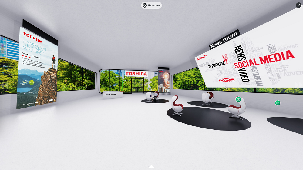 Lo spazio virtuale in cui Toshiba accoglie i propri ospiti stupisce per il realismo e la ricchezza dei contenuti, tutti fruibili con un semplice click. Dalla “news room” dove poter visualizzare la rassegna stampa e i contenuti di tutti gli account social di Toshiba Clima, alla biblioteca virtuale cui accedere per scaricare cataloghi e schede tecniche, passando per sale dedicate in cui poter chattare con tutti i visitatori: lo Showroom virtuale di Toshiba sfrutta la tecnologia messa a punto da Wikipoint, soluzione proprietaria della startup innovativa Digiwow, per rendere accessibile a tutti l’esperienza digitale, allontanando il pregiudizio che il Metaverso e la realtà virtuale siano concetti riservati solo ad un pubblico altamente specializzato.