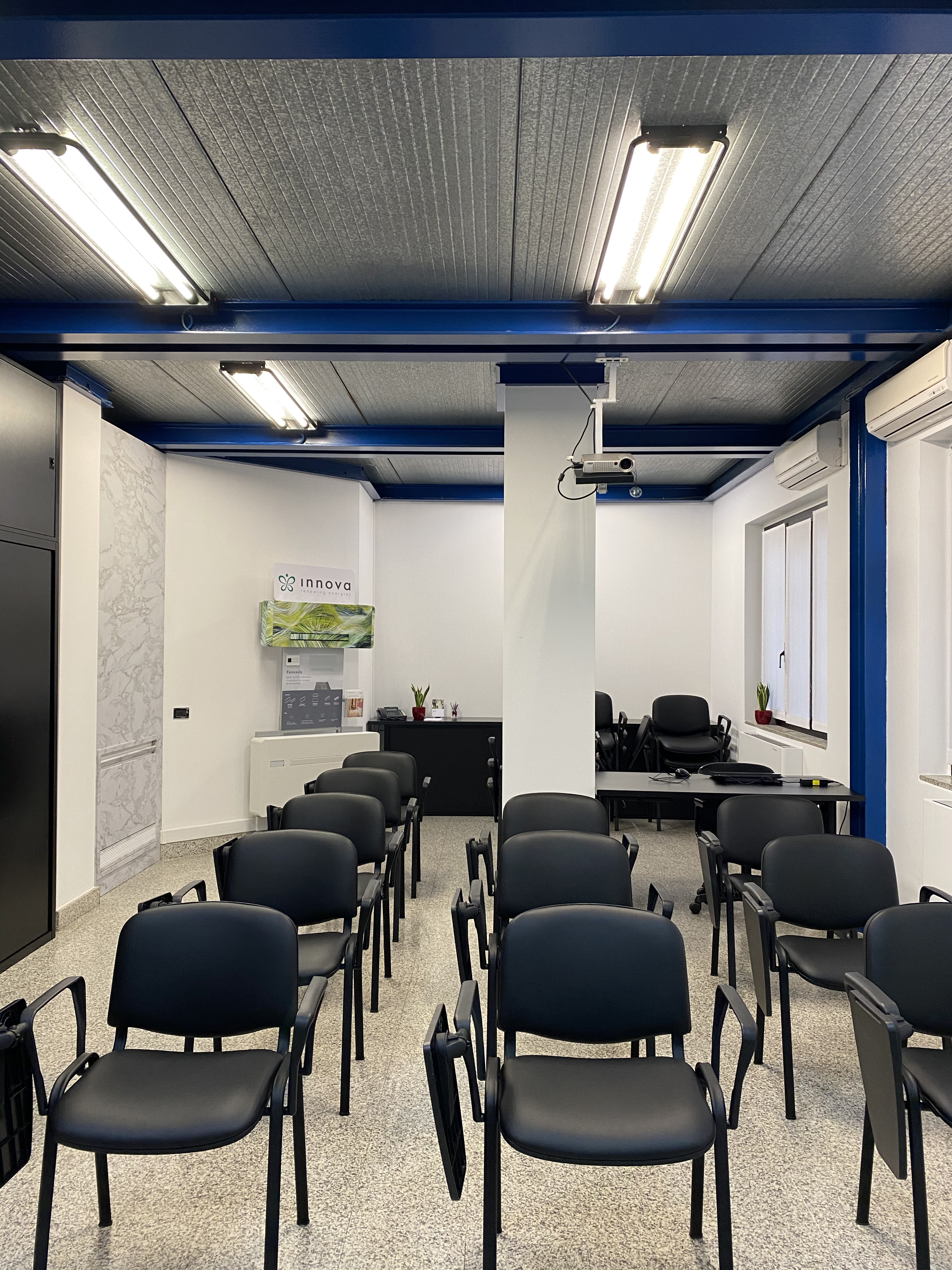 showroomLa zona centrale di INNOVA Atelier è il cuore relazionale dello spazio dove si raccontano i progetti e ci si confronta in merito alle possibili soluzioni tecnologiche, mentre, nell’ampia sala attrezzata, collocata alla fine del percorso, si svolgono i corsi di formazione che possono ospitare sino a una ventina di partecipanti.