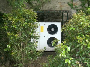 Al piano primo è stato possibile installare un pavimento radiante, previa rimozione e riposatura di un prezioso pavimento in cotto, mentre al secondo piano è stato installato un pannello radiante a soffitto per non sollecitare la travatura portante del pavimento. Visto il particolare sistema di emissione di tipo misto, alta e bassa temperatura, è stato poi progettato un sistema di produzione integrato con pompa di calore e caldaia a gas metano. Inizialmente si è valutata la possibilità di utilizzare una pompa di calore del tipo acqua/acqua, a circuito aperto, ‘open loop’, con acqua di falda freatica a bassa temperatura (bassa entalpia), con emungimento e reimmissione in pozzi, una tipologia di impianto che avrebbe garantito altissimi COP. In seguito alla prova di portata suggerita alla committenza, tuttavia, sono emersi valori di portata molto bassi, insufficienti a soddisfare il fabbisogno minimo di buon funzionamento della pompa di calore, perciò è stato scelto di utilizzare una pompa di calore del tipo aria/acqua concepita per il solo riscaldamento, con caratteristiche tali da garantire comunque alte efficienze durante questo regime di esercizio.